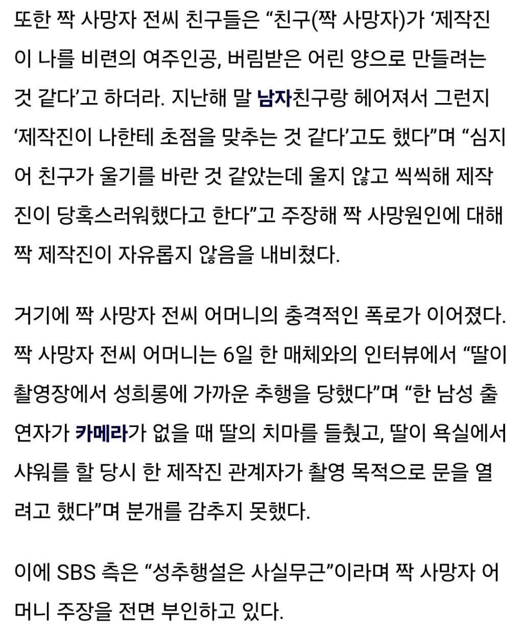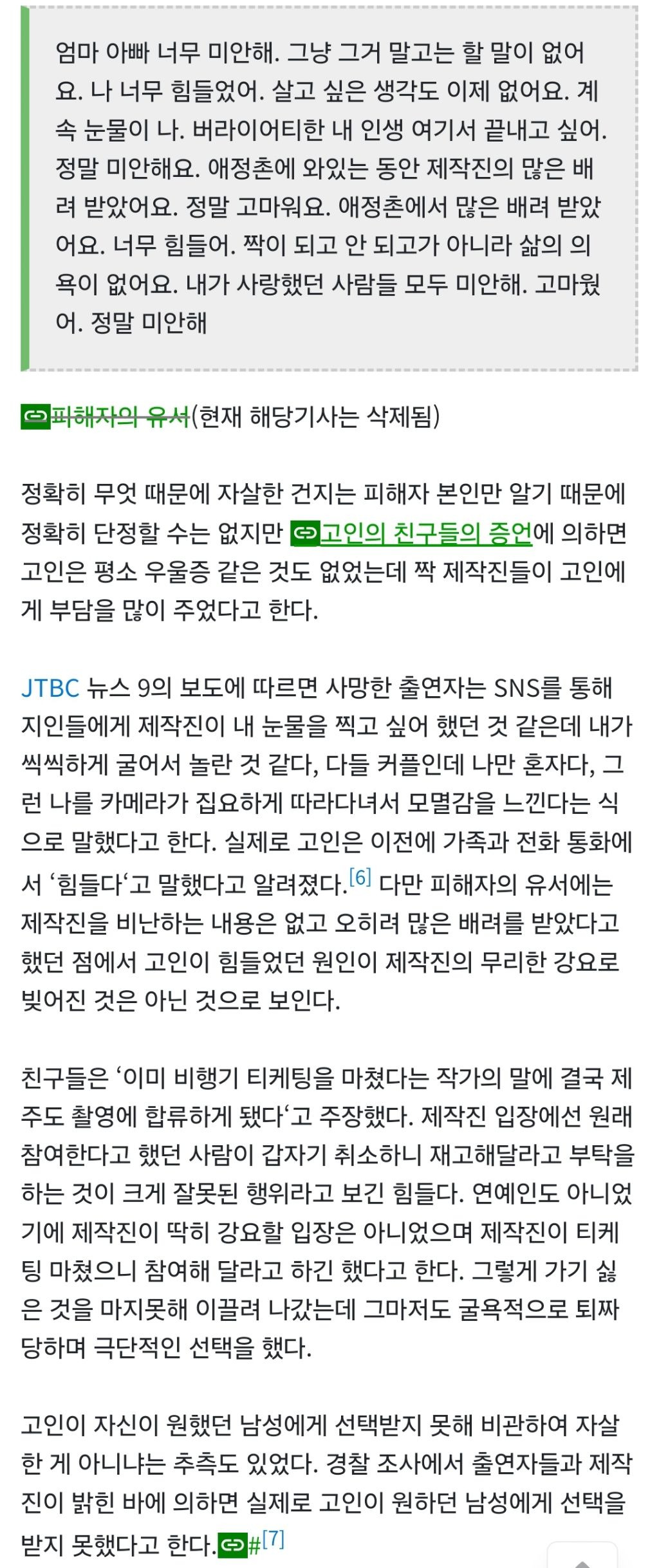 여성 출연자가 스스로 목숨을 끊은 일이 발생했고