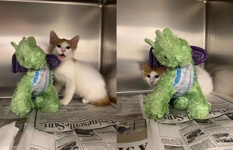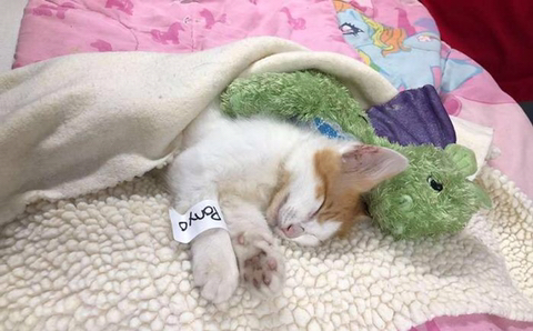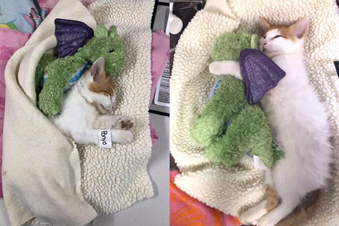 겁 잔뜩 먹은 아깽이 위해 '절친 인형'도 함께 수술해 준 수의사