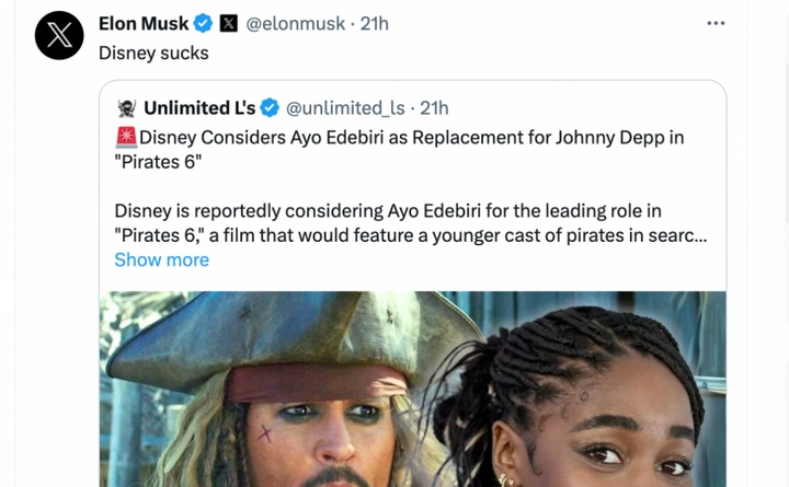 근데 이걸 일론머스크가 "디즈니 ㅅㅂ" 하면서 공유함