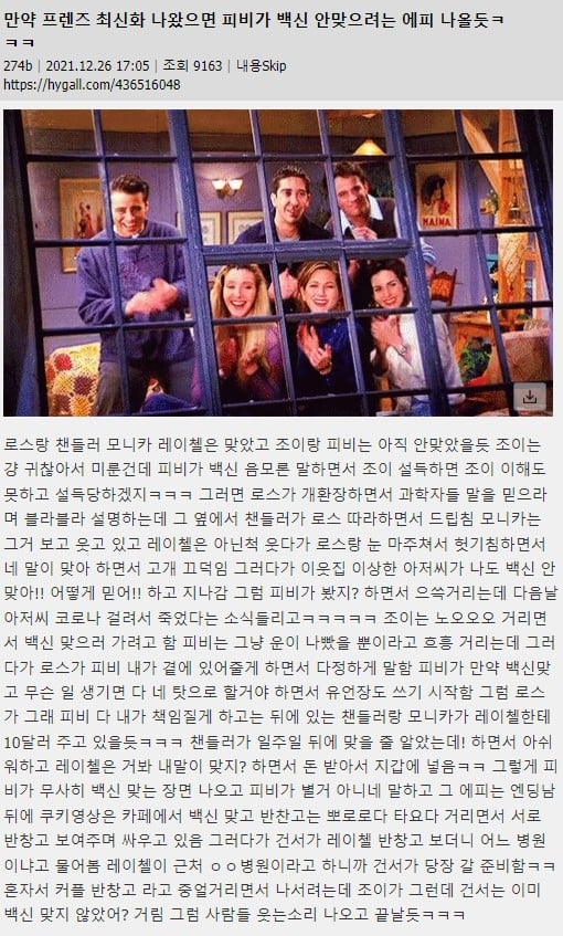 조이는 걍 귀찮아서 미룬건데 피비가 백신 음모론 말하면서