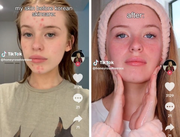 한 틱톡 이용자는 한국 스킨케어 제품을 3주간 사용한 후기 영상을 올렸다.