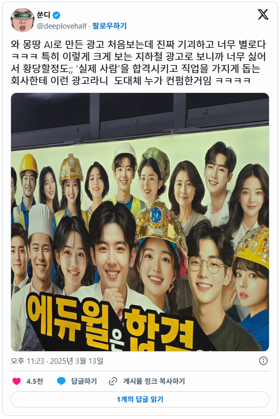 출처: https://x.com/deeplovehalf/status/1900191065317261507?t=Jvw2O0mjtXV5K8VVwYrulg&s=19