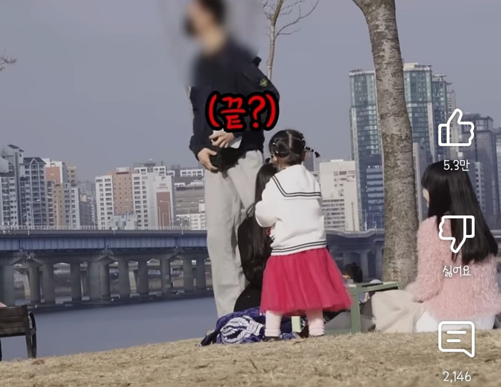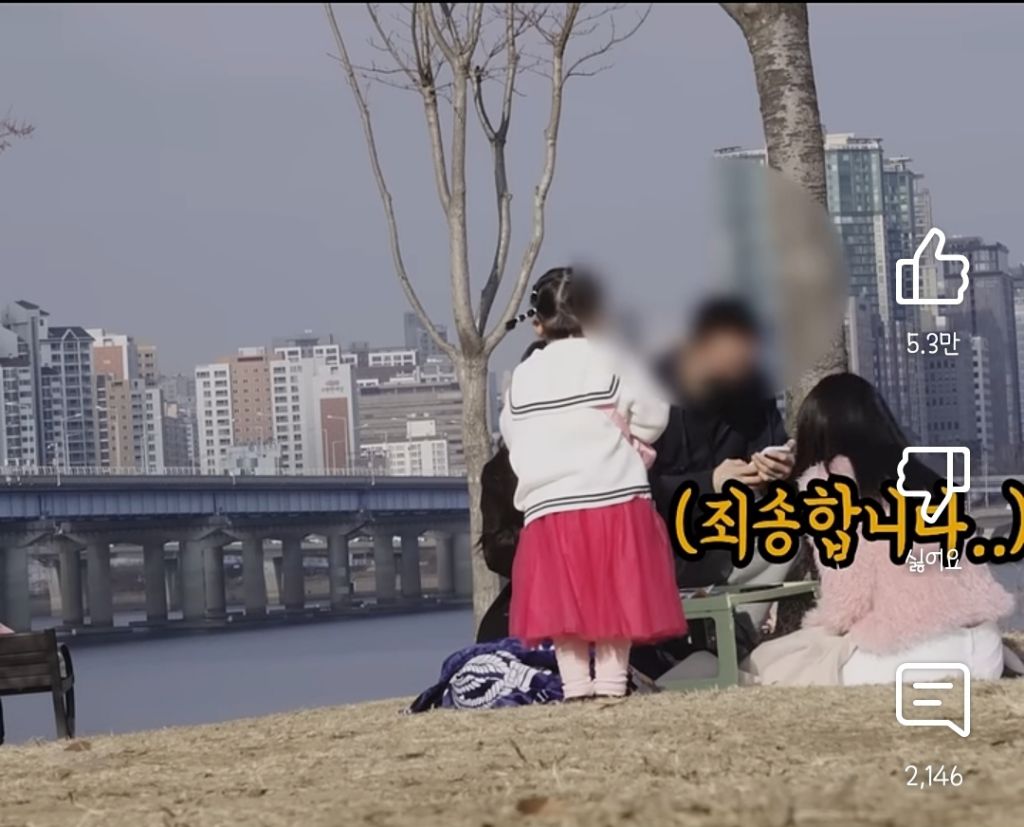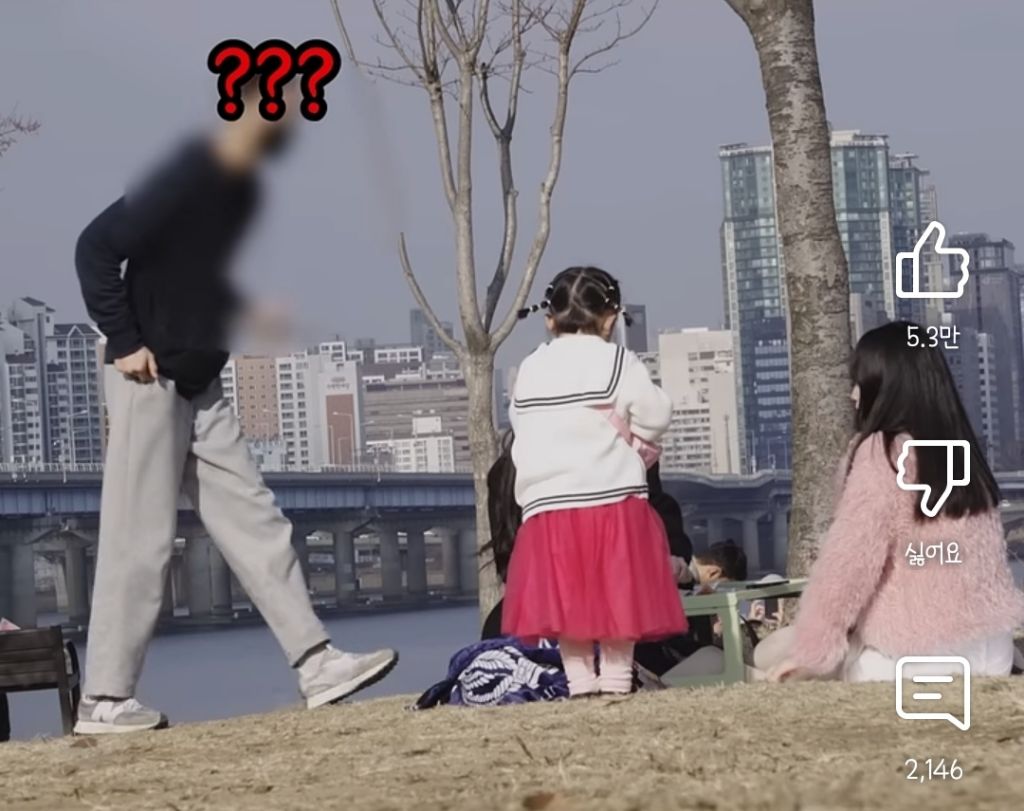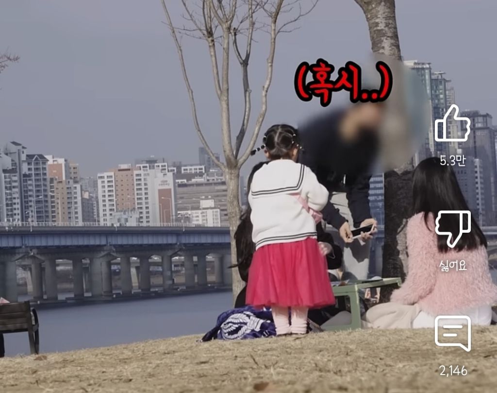 아이가 도움을 요청했을 때의 반응을 실험하는 영상을 촬영 중...