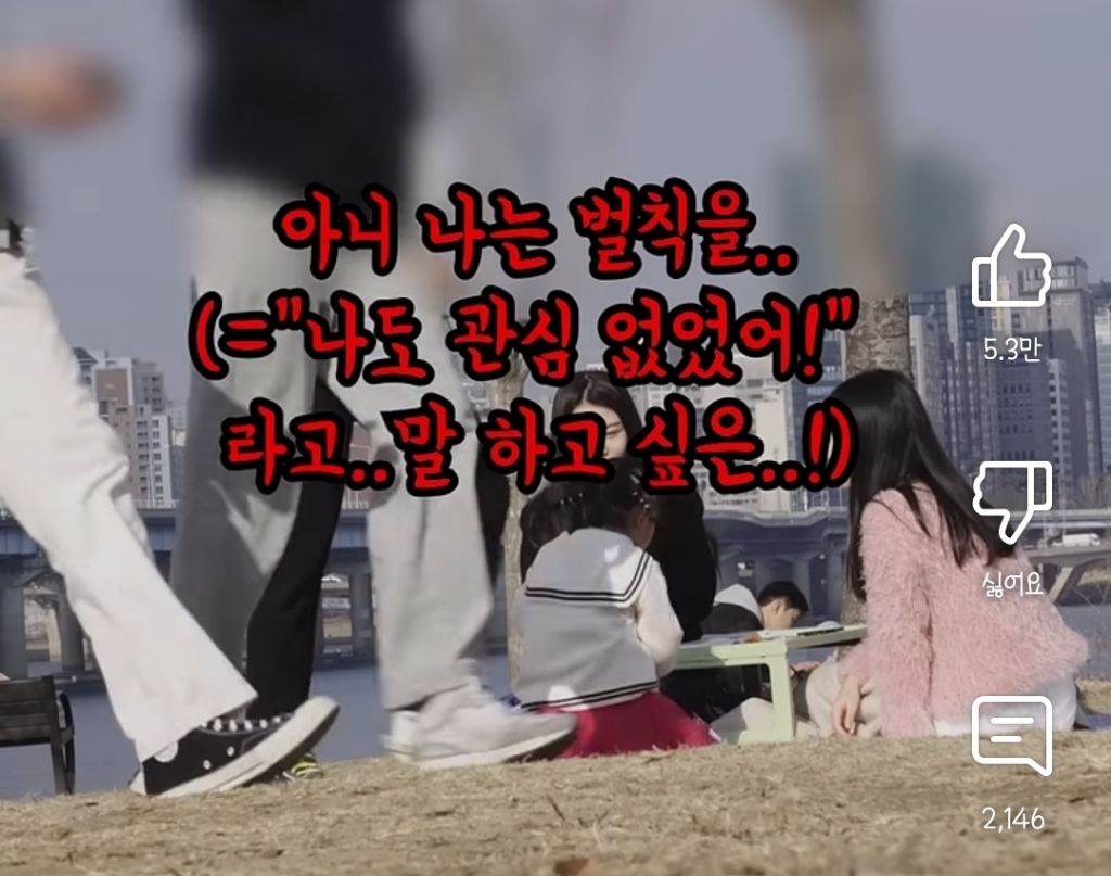 벌칙 때문에 어쩔 수 없이 한 거였음을 어필하려는 듯 혼잣말을 중얼거림...