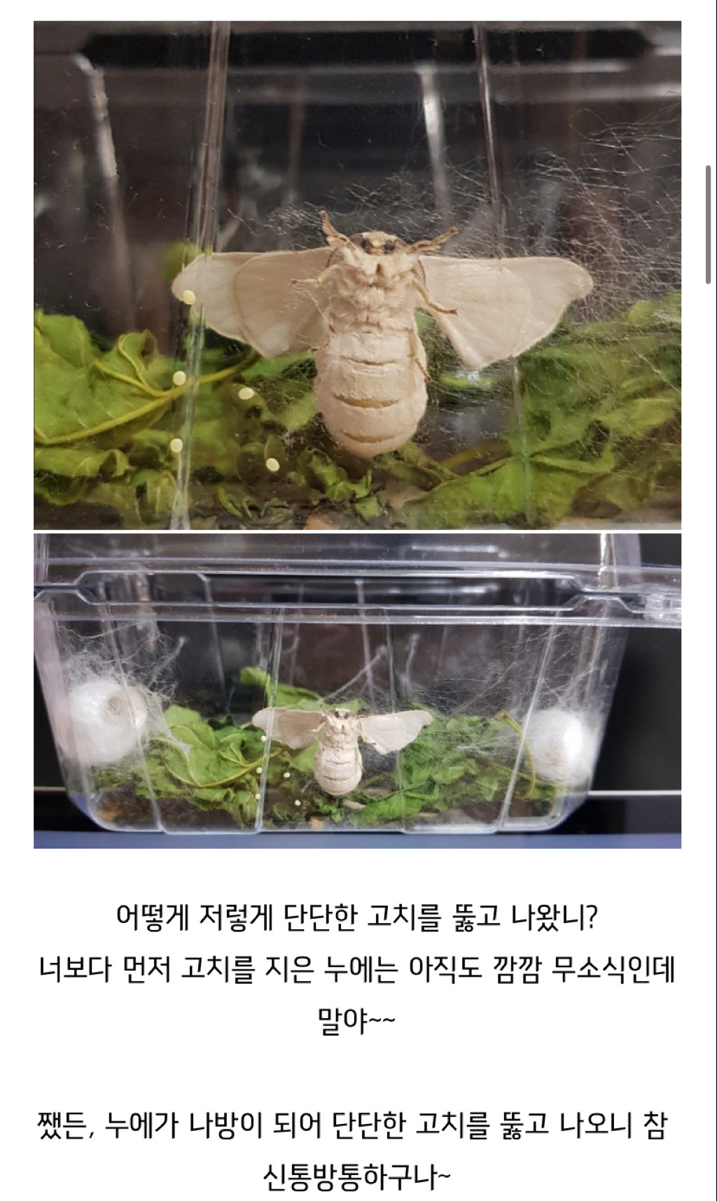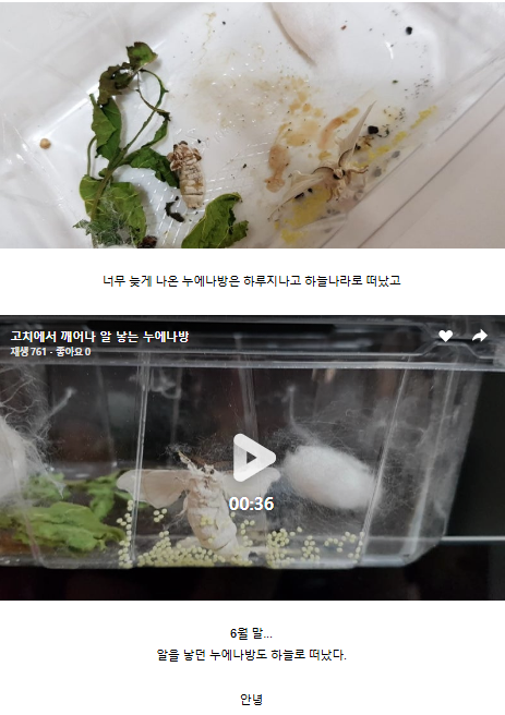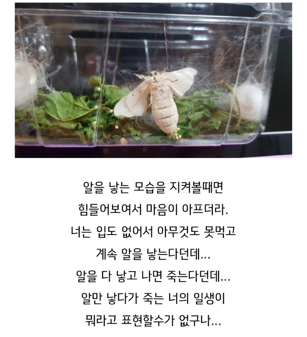 나방이된 이후에 알만 낳고 죽는다고 함 ㅠㅠ