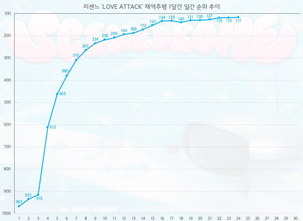 리센느 재역주행 1달간 일간순위추이