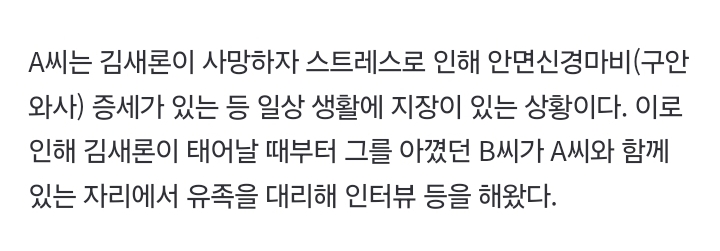 지인 B씨가 인터뷰를 대신해준 것