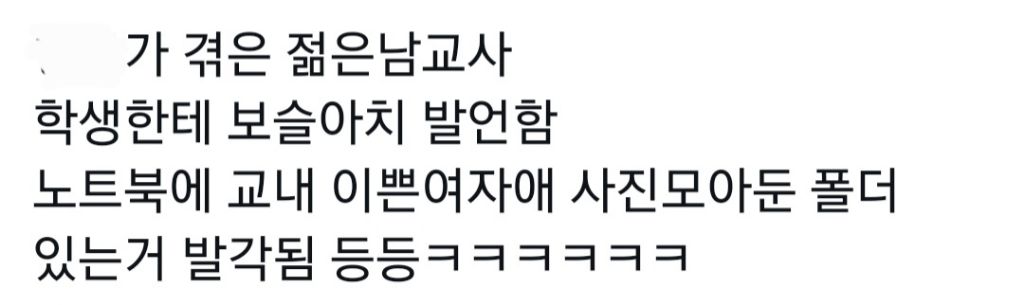 작성자크로스핏 존잼 작성시간 25.03.15 유사연애하던 남교사있었어 다시생각해도 미친놈이였어