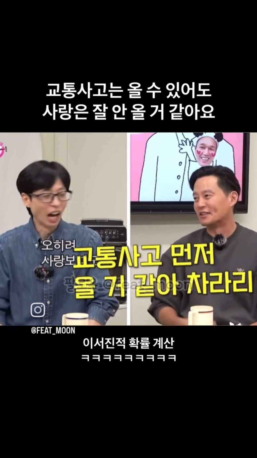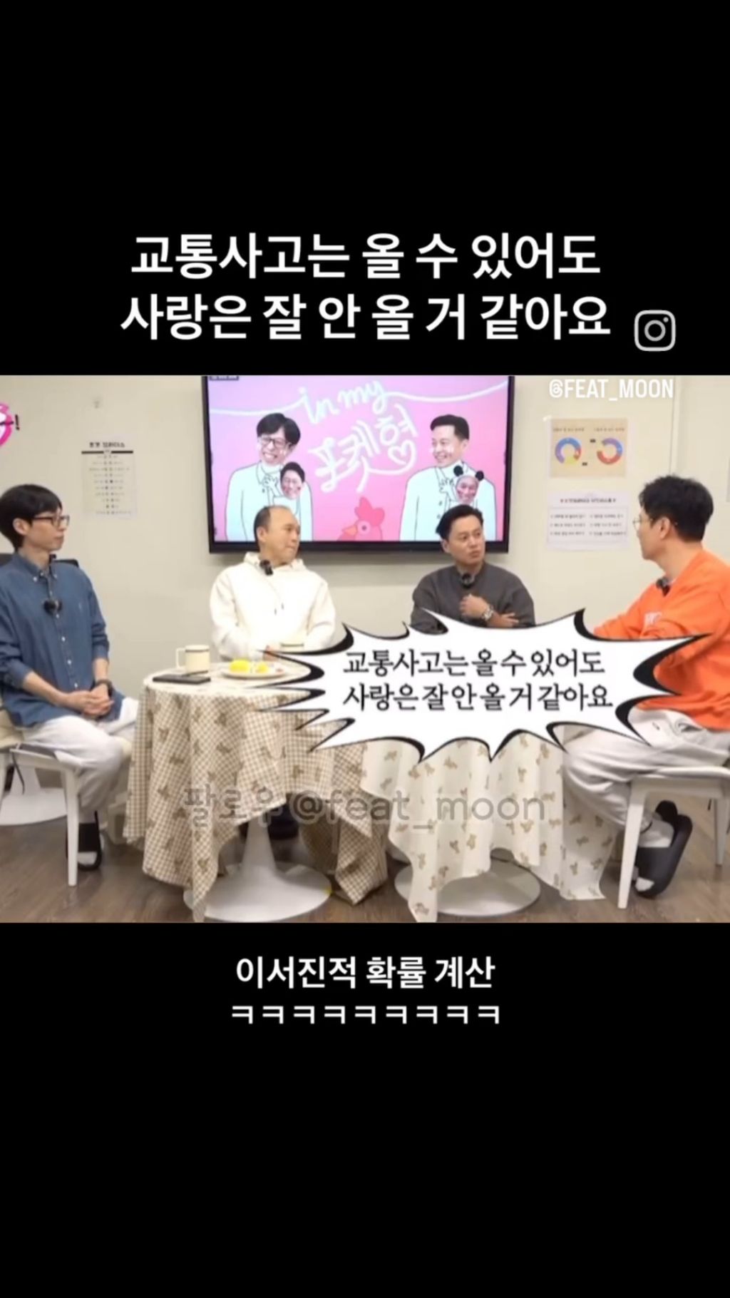 [흥미돋]사랑은 교통사고처럼 온다는 말에 솔직한 반응 작성자(본인 닉네임.|작성시간25.03.14|조회수47,165 목록 댓글 19 글자크기 작게가 글자크기 크게가 출처: https://www.instagram.com/reel/DG7jsB8yWDn/교통사고? 올 수 있지사랑? 은... 다음검색 현재 게시글 추가 기능 열기 북마크 공유하기 신고 센터로 신고 댓글 댓글 19 댓글쓰기 답글쓰기 댓글 리스트 작성자싫다고했잖여 | 작성시간 25.03.14 나도 인생에서 교통사고 네번났다..맞네 교통사고 확률이 훨씬 높네ㅋㅋㅋㅋㅋ 작성자녜아니고냬 | 작성시간 25.03.14 그렇긴해 나도 사랑보다 교통사고를 많이 겪었어^^ 작성자뵥뵥 | 작성시간 25.03.14 난 실제로 교통사고를 작년에만 3번겪엇어...(혼자박은거포함) 작성자믹모지 | 작성시간 25.03.14 아 저래서 저 말한거구낰ㅋㅋㅋ 작성자얏뜨 | 작성시간 25.03.14 아무래도 그치 댓글 전체보기