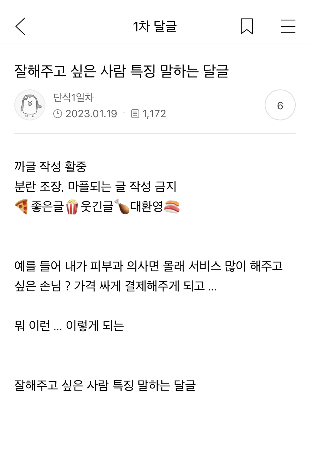 [스크랩] [흥미돋]잘해주고 싶은 사람 특징 말하는 달글 작성자냐웅잉|작성시간25.03.14|조회수10,636 목록 댓글 42 글자크기 작게가 글자크기 크게가 출처: https://m.cafe.daum.net/subdued20club/WFYL/1122788 다음검색 스크랩 원문 : *여성시대* 차분한 20대들의 알흠다운 공간 현재 게시글 추가 기능 열기 북마크 공유하기 신고 센터로 신고 댓글 댓글 42 댓글쓰기 답글쓰기 댓글 리스트 작성자굳세어라재명아 | 작성시간 25.03.15 묵묵하게 본인 할일을 잘 하는 사람 작성자태승이 | 작성시간 25.03.15 나한테 바라는거없고 착한사람 작성자한남동민초부대 | 작성시간 25.03.15 순딩한 사람 사과하고 인정할 줄 알고 배려할 줄 아는 사람 작성자blush | 작성시간 25.03.15 리액션좋고 겸손한사람 작성자탕후루헴 | 작성시간 25.03.15 여자 댓글 전체보기