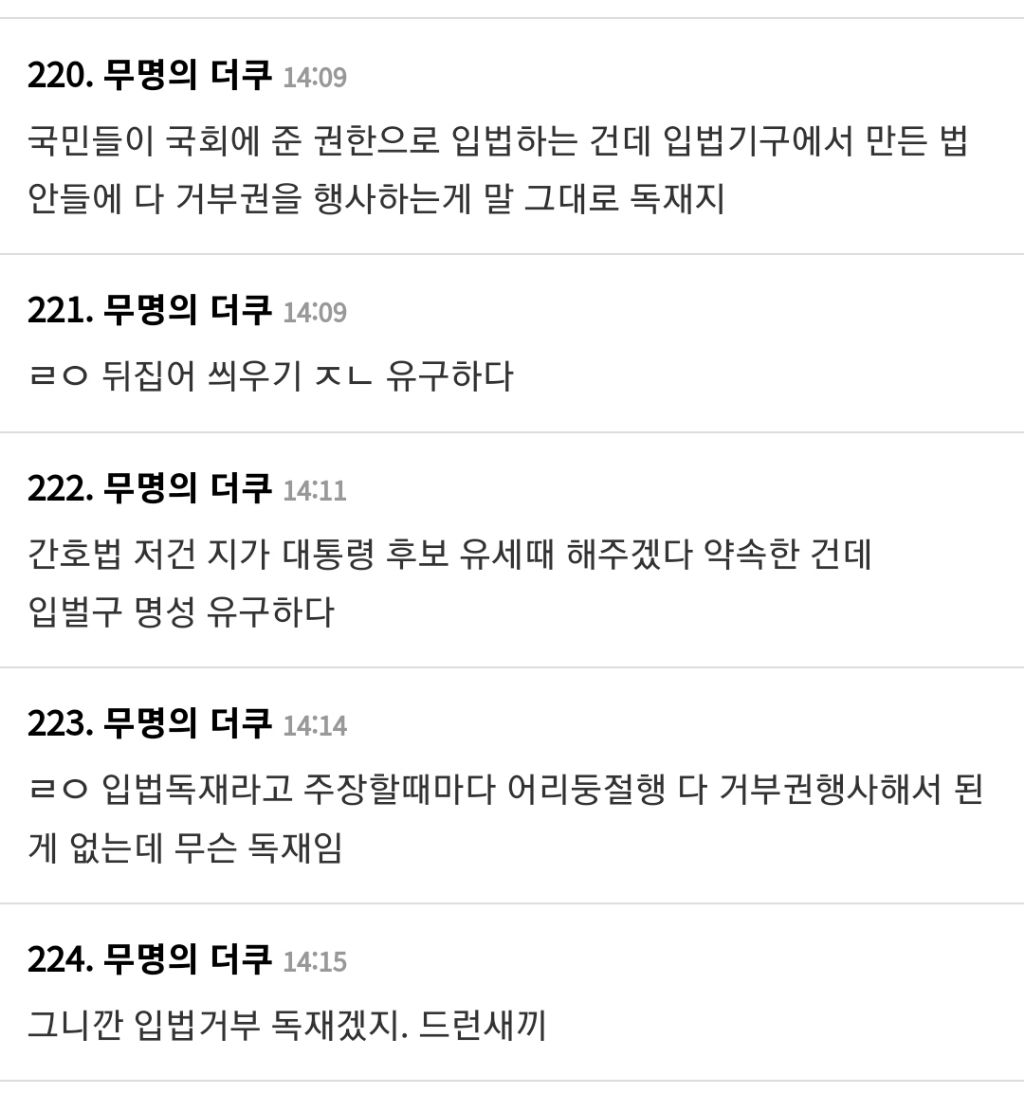 [칵.cxxx]자꾸 입법독재라고 하는데 입법이 된게 있나요? 작성자라면생각하는사람|작성시간25.03.14|조회수3,417 목록 댓글 25 글자크기 작게가 글자크기 크게가 출처: https://theqoo.net/square/3647786166프레임만 ㅈㄴ 잘짜고 언론이 계속 받아쓰기해서 정치 무관심층은 진짜 민주당이 입법 개많이한줄 알더라윤석열 거부권 개많이썼고대통령 시행령으로 하고픈거 다 함입법거부독재국민의힘 다음검색 현재 게시글 추가 기능 열기 북마크 공유하기 신고 센터로 신고 댓글 댓글 25 댓글쓰기 답글쓰기 댓글 리스트 작성자조쉬 코헨 | 작성시간 25.03.15 하는 말마다 논리 개박살 나는 멍청한 당은 해산해라 작성자유잼유잼유잼 | 작성시간 25.03.15 ㅇㄱㄹㅇ 작성자비혼이다비혼 | 작성시간 25.03.15 ㅇㅈ 작성자감쪽같은 개새기 | 작성시간 25.03.15 입법하는 게 국회의원 일인데 느그당 때문에 일이 진행이 안 되잖아 작성자안졸리냐졸려 | 작성시간 25.04.04 거부권을 이렇게 많이 쓴 정권이 어디있냐고 댓글 전체보기