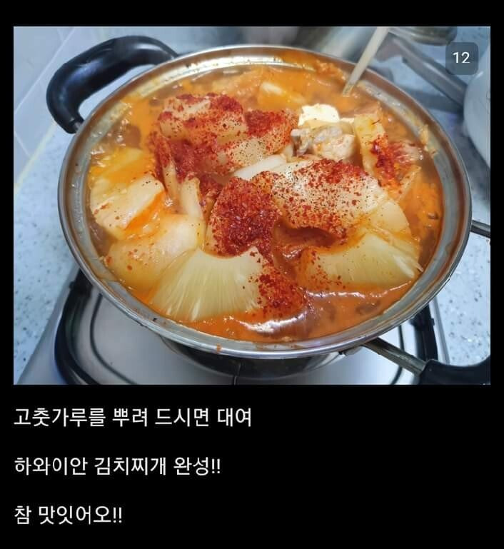 [흥미돋]알베르토가 이해가는 하와이안 김치찌개 작성자한희아|작성시간25.03.15|조회수139,769 목록 댓글 280 글자크기 작게가 글자크기 크게가 출처: 여성시대 (한희아)https://www.instagram.com/share/BAfbisC14i 다음검색 현재 게시글 추가 기능 열기 북마크 공유하기 신고 센터로 신고 댓글 댓글 280 댓글쓰기 답글쓰기 댓글 리스트 작성자웅냥냥뇽 | 작성시간 25.03.22 차라리 날 죽여김치찌개는 오로지 김치로 인한 단맛 뿐이다 작성자크러쉬-SKIP | 작성시간 25.03.22 .. 작성자꽃송이가나를삼킬걸알면서뛰어들었어 | 작성시간 25.03.22 맛있겠다 작성자돈많은백수강쥐 | 작성시간 25.03.22 오.. 작성자엘론머스크 | 작성시간 25.03.23 약간 파인애플김치 같을거 같은데 댓글 전체보기