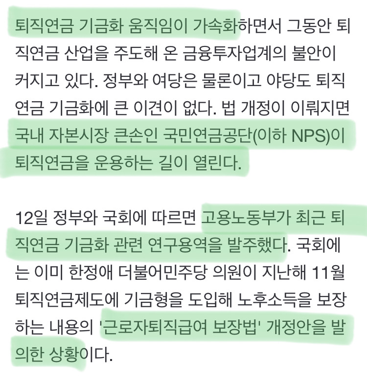 [흥미돋]국민연금이 퇴직연금 시장에 진출하게 될수도 있다함 작성자(본인닉네임).|작성시간25.03.15|조회수7,000 목록 댓글 17 글자크기 작게가 글자크기 크게가 출처: https://n.news.naver.com/article/008/0005164673?sid=101국민들 입장에선 좋은거 같은데 아닌가..?내가 잘못 생각하는건가.. 다음검색 현재 게시글 추가 기능 열기 북마크 공유하기 신고 센터로 신고 댓글 댓글 17 댓글쓰기 답글쓰기 댓글 리스트 답댓글 작성자푸릇푸릇여시 | 작성시간 25.03.15 좋은 기사 고마워 여시야! 작성자강물이되어흘러흘러 | 작성시간 25.03.15 굿 작성자dogs | 작성시간 25.03.15 ㅐㅐ해줘 작성자이마트삼겹살 | 작성시간 25.03.15 해줘!!!!!사연금보다 훨낫지!!! 작성자벼룩의 꿈은 벼락부자 | 작성시간 25.03.15 오 댓글 전체보기