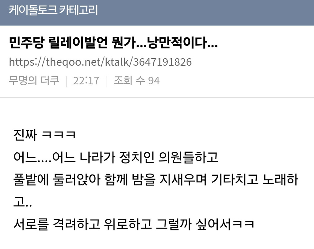 어제 밤에 이 글 보고 눈물 좔좔 흘림... "우리나라의 민주주의는 이렇게 낭만적이기도 하구나" pic.twitter.com/2pUuTDaSdN