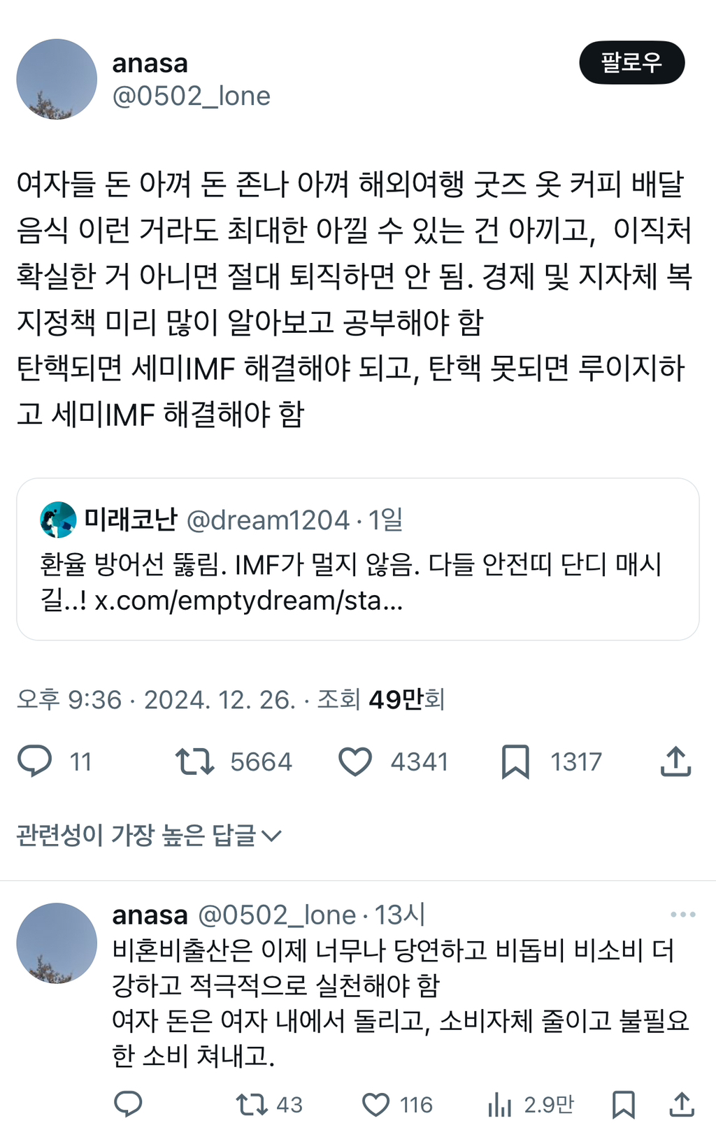 [스크랩] [기타]여자들 돈 아껴 작성자타미탐이나|작성시간25.03.15|조회수14,558 목록 댓글 23 글자크기 작게가 글자크기 크게가 다음검색 스크랩 원문 : 쭉빵카페 현재 게시글 추가 기능 열기 북마크 공유하기 신고 센터로 신고 댓글 댓글 23 댓글쓰기 답글쓰기 댓글 리스트 작성자책읽고차마시고운동하자 | 작성시간 25.03.15 진심 탄핵되면 탄핵푸드만 잔뜩먹고 배달도 안시켜야지 작성자건강재물행복 | 작성시간 25.03.15 ㅇㅇ... 돈 아껴야 한다. 예적금 들고 걍 버텨야 함. 작성자천국행 | 작성시간 25.03.15 집사야하는데..ㅜ 작성자스피또당첨되게해주세요 | 작성시간 25.03.15 하...해외여행 가는게 삶의낙인데... 작성자땃쥐G | 작성시간 25.03.15 백수인데 댓글 전체보기