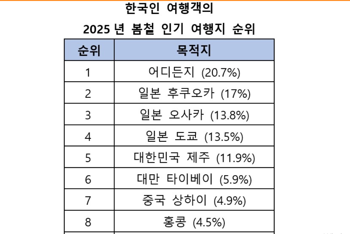 여행 앱 스카이스캐너가 검색 데이터를 기반으로 2025년 봄 한국인 여행객이 사랑하는 봄철 인기 여행지를 공개했다.