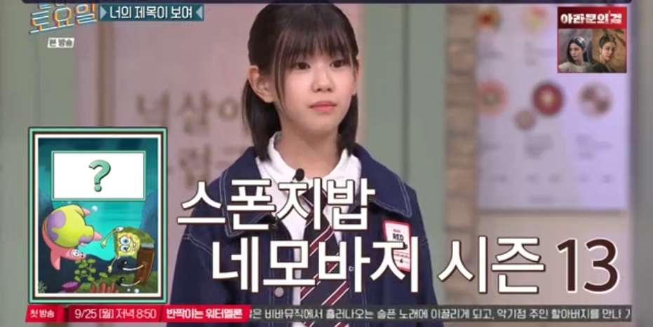 [스크랩] [흥미돋]오늘자 놀토 정답 맞히면 죄책감에 시달리는 간식 게임 작성자염치아줌마|작성시간25.03.16|조회수40,737 목록 댓글 76 글자크기 작게가 글자크기 크게가 출처 : 여성시대 돈도없으니신경꺼야지오늘의 게스트는 소이그래서 간식게임때 소이를 위해 애니메이션 문제들이 나옴? 정답...정답데스노트 적는 소이정답ㅎ 정답정답정답ㅠ틀리면서 힌트주려고 안간힘 쓰는 키드디어 소이 정답🩷 다음검색 스크랩 원문 : *여성시대* 차분한 20대들의 알흠다운 공간 현재 게시글 추가 기능 열기 북마크 공유하기 신고 센터로 신고 댓글 댓글 76 댓글쓰기 답글쓰기 댓글 리스트 작성자진지왕의 자장면 | 작성시간 25.03.16 세모바지 ㅁㅊㅋㅋㅋㅋㅋㅋㅌㅋㅋ 작성자날벼락치기 | 작성시간 25.03.16 세모바지 ㅋㅋㅋㅋㅋㅋㅋㅋㅋ 작성자비타비타씨 | 작성시간 25.03.16 소이가누군지도알려줘 네이버에치니저친군안나와.. 답댓글 작성자염치아줌마 작성자 본인 여부 작성자 | 작성시간 25.03.16 박소이라는 아역배우야!천박사 영화에 나온 아이!! 작성자아나까나까나리까리키퍼웨이 | 작성시간 25.03.17 아존ㄴ나웃겨 댓글 전체보기