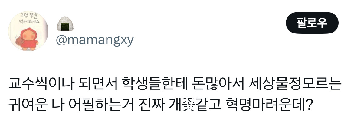 작성자https:/cafe.daum.net/subdued20club 작성시간 25.03.17 교수면 뭐하냐 수준이...