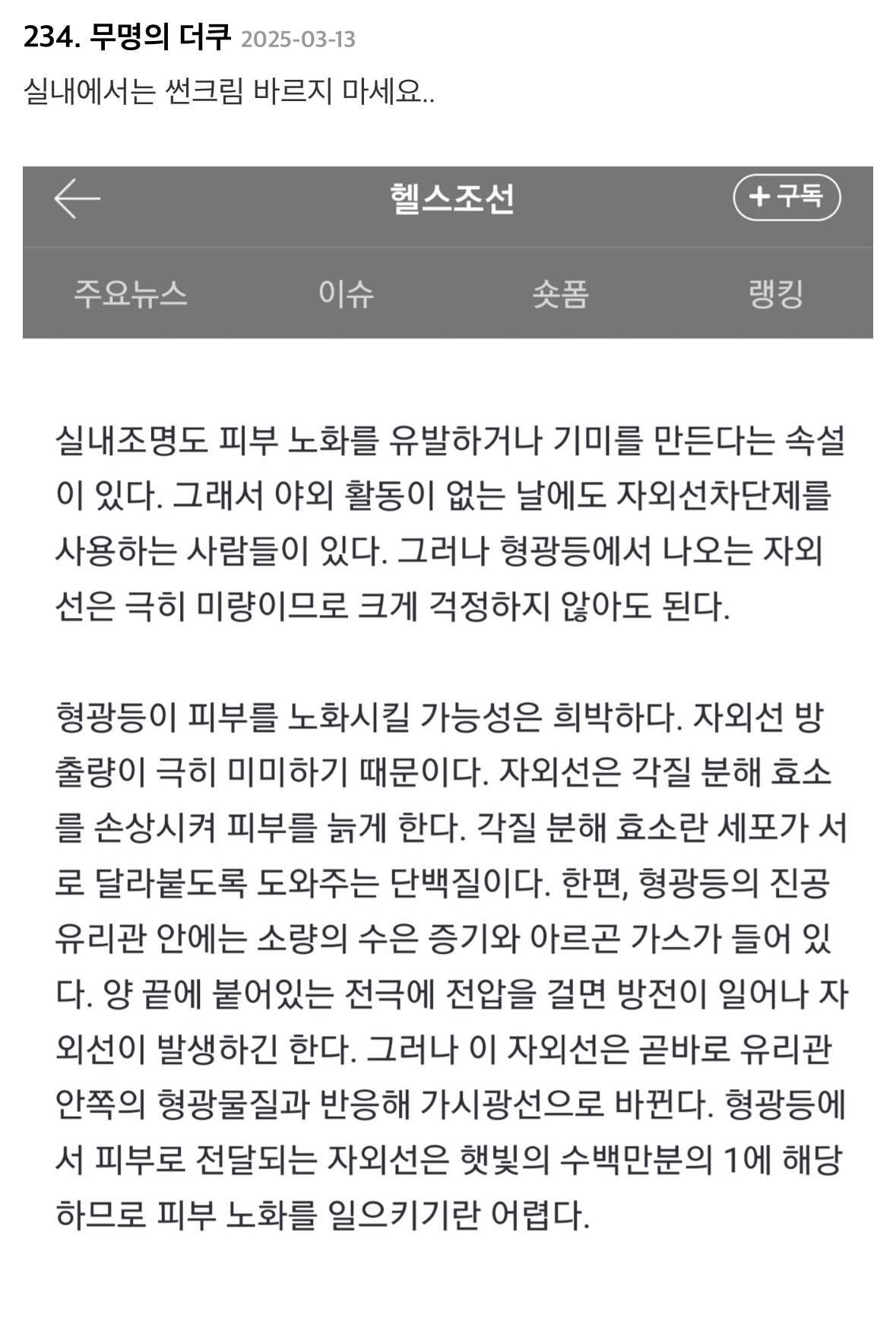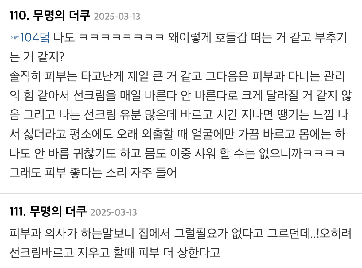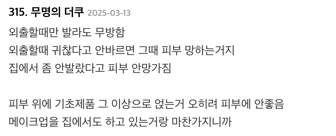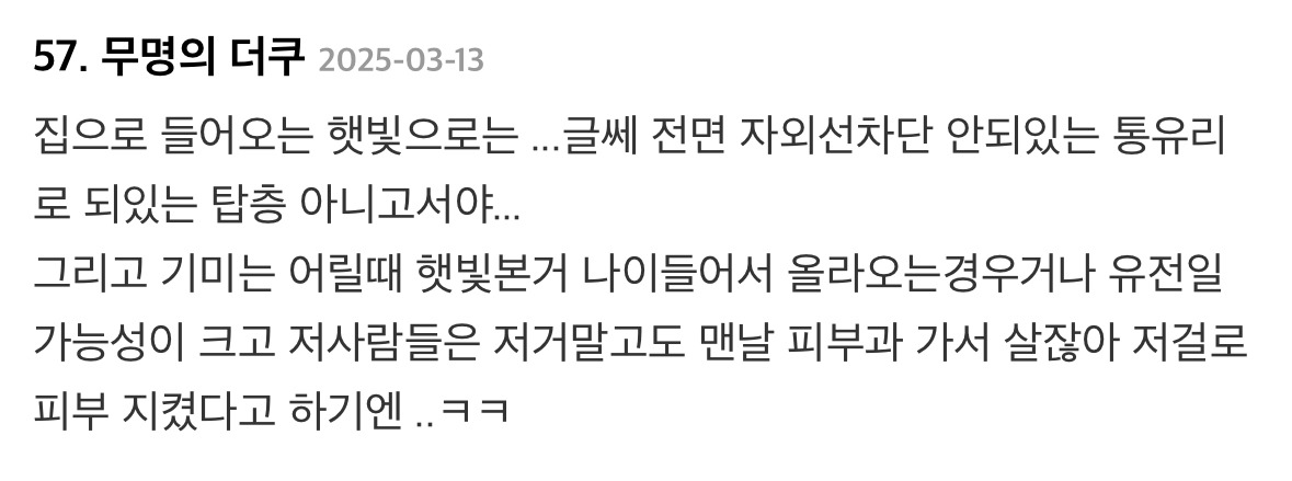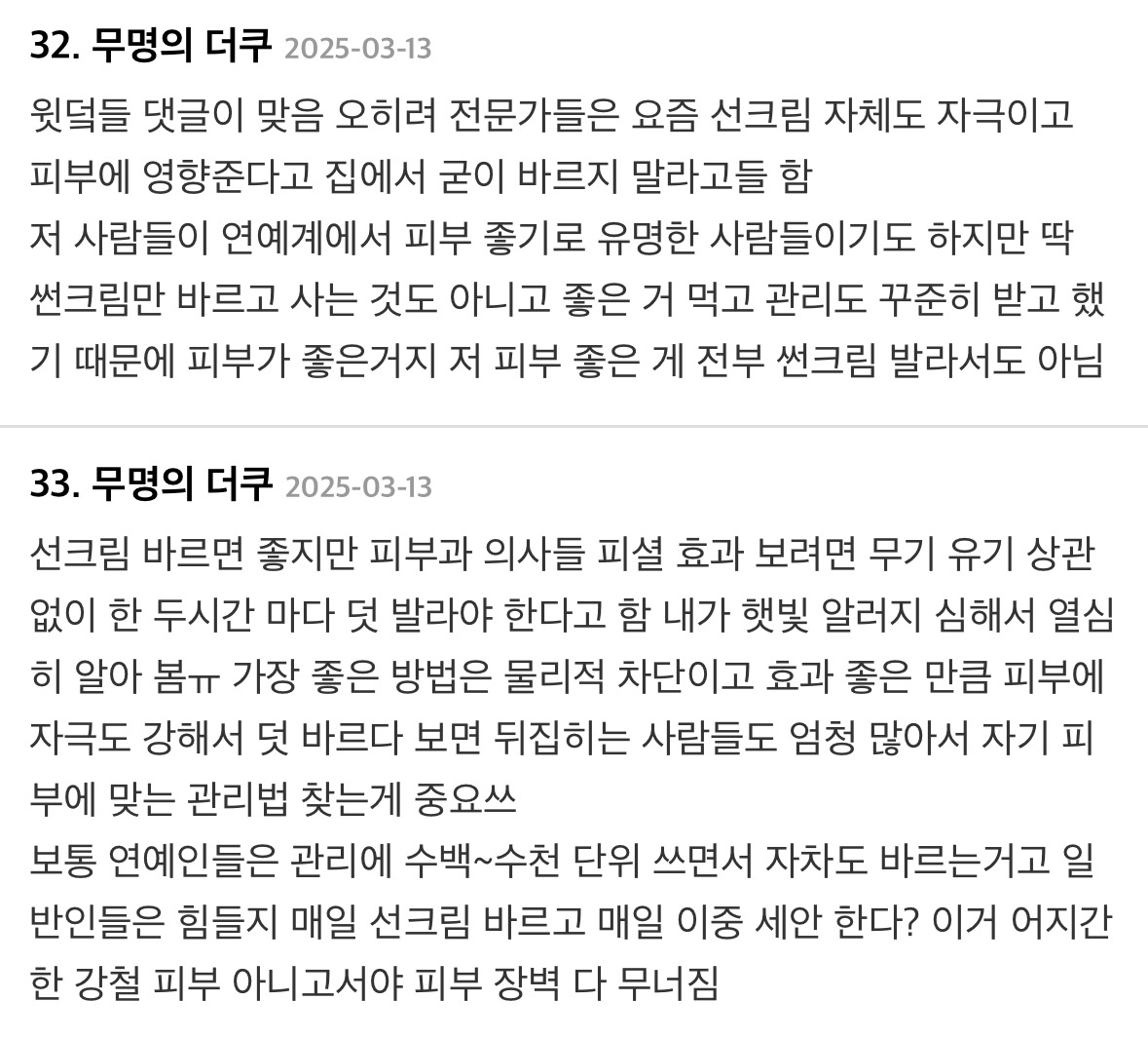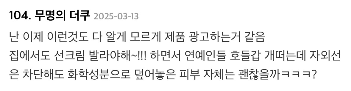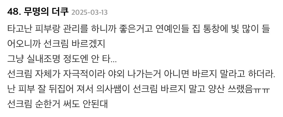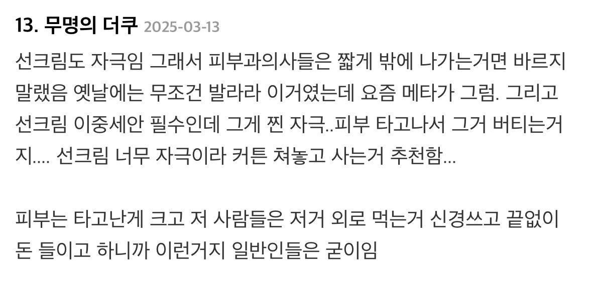 제일 중요한게 선크림이라고 얘기하는 내용의 글에 달린 댓글