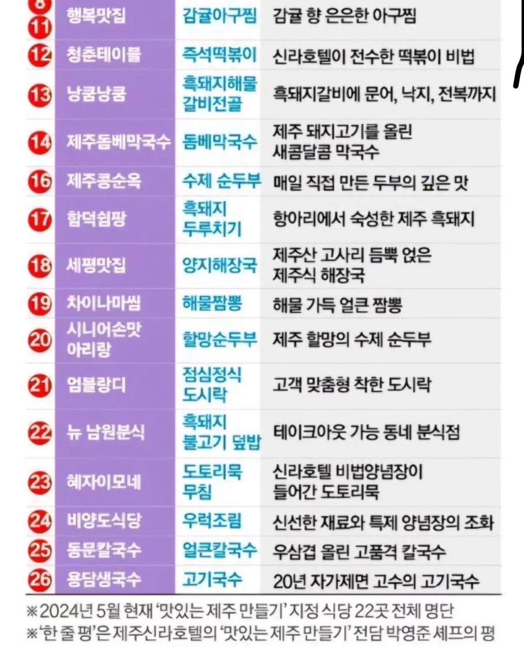 [흥미돋]신라호텔이 관리 중인 제주 식당 리스트 작성자환상통오짐|작성시간25.03.16|조회수41,291 목록 댓글 16 글자크기 작게가 글자크기 크게가 출처: 트위터https://x.com/makkiyom/status/1900948455872491821?s=46&t=WbFJ8QIO5syCbY8dGlPjsQ 다음검색 현재 게시글 추가 기능 열기 북마크 공유하기 신고 센터로 신고 댓글 댓글 16 댓글쓰기 답글쓰기 댓글 리스트 작성자취미찾기가취미 | 작성시간 25.03.16 메로식당미쳤음... 작성자CrueI Summer | 작성시간 25.03.16 오 북마크!! 작성자bearrrrr | 작성시간 25.03.16 이번에 제주가는데 메로식당 가봐야겠다!! 작성자개둘기 | 작성시간 25.03.16 저 셰프가 고르는 것인감 작성자회피하면언해피 | 작성시간 25.03.16 간다!!!!! 댓글 전체보기