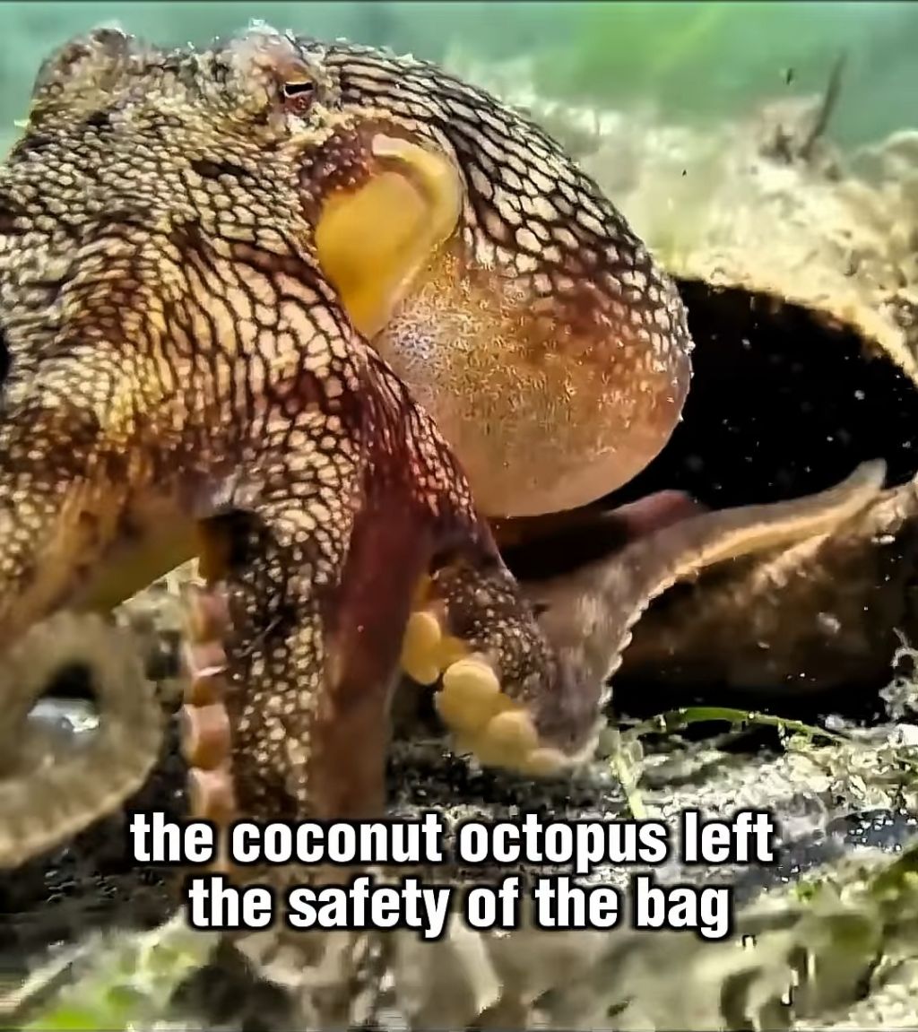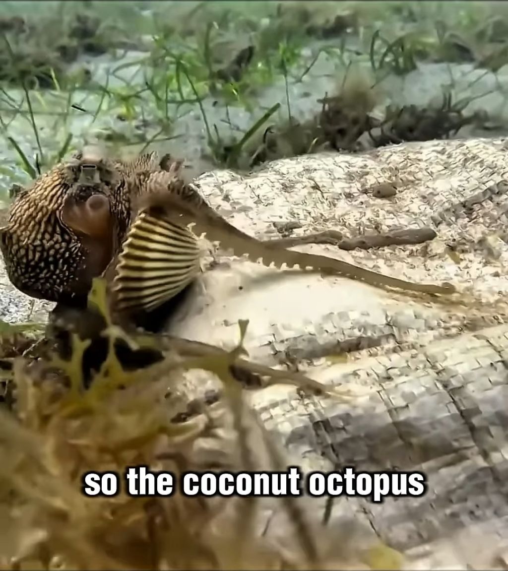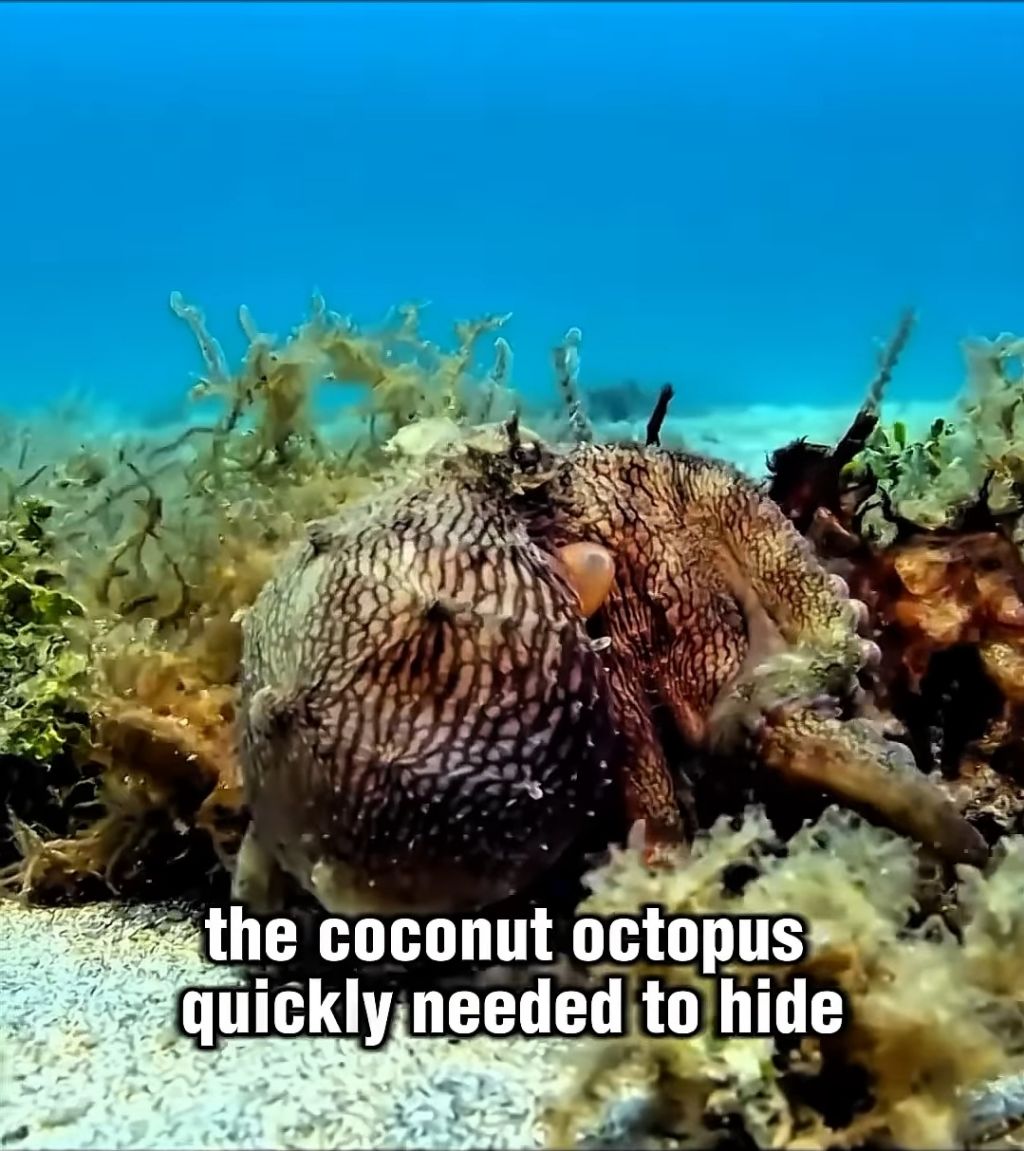 코코넛문어는 더 안전한 곳으로 몸을 숨김