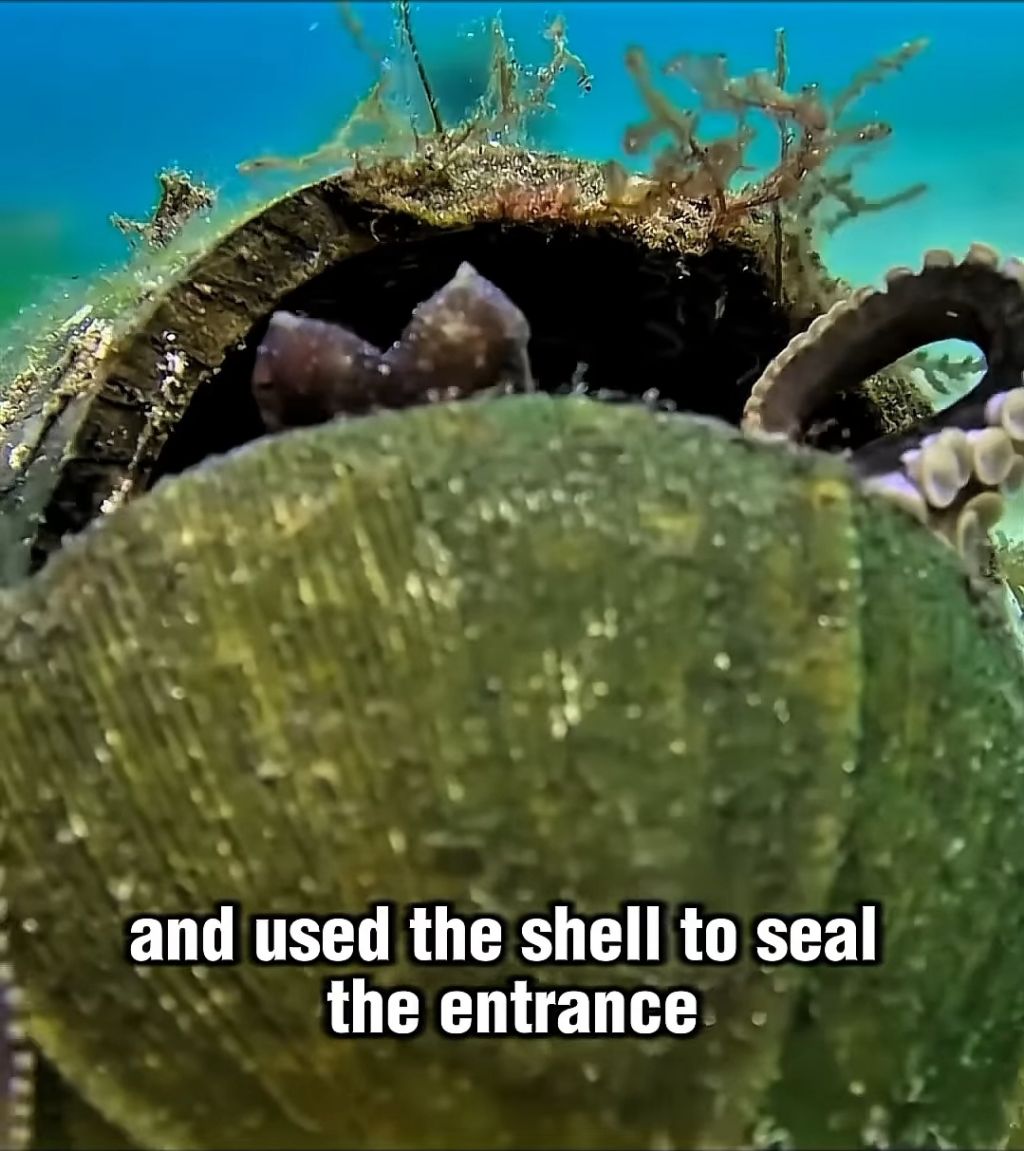 코코넛 문어는 코코넛껍질로 대나무 입구를 잘 막았고 상어들은 그대로 떠남!!