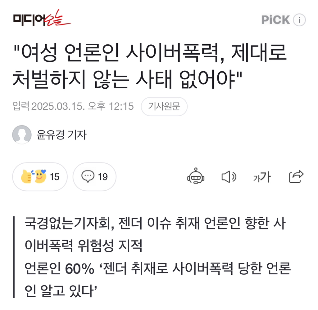 작성자로로로힘 작성시간 25.03.16 맞말 댓글에 여자 기자들 공격하능거 개많아