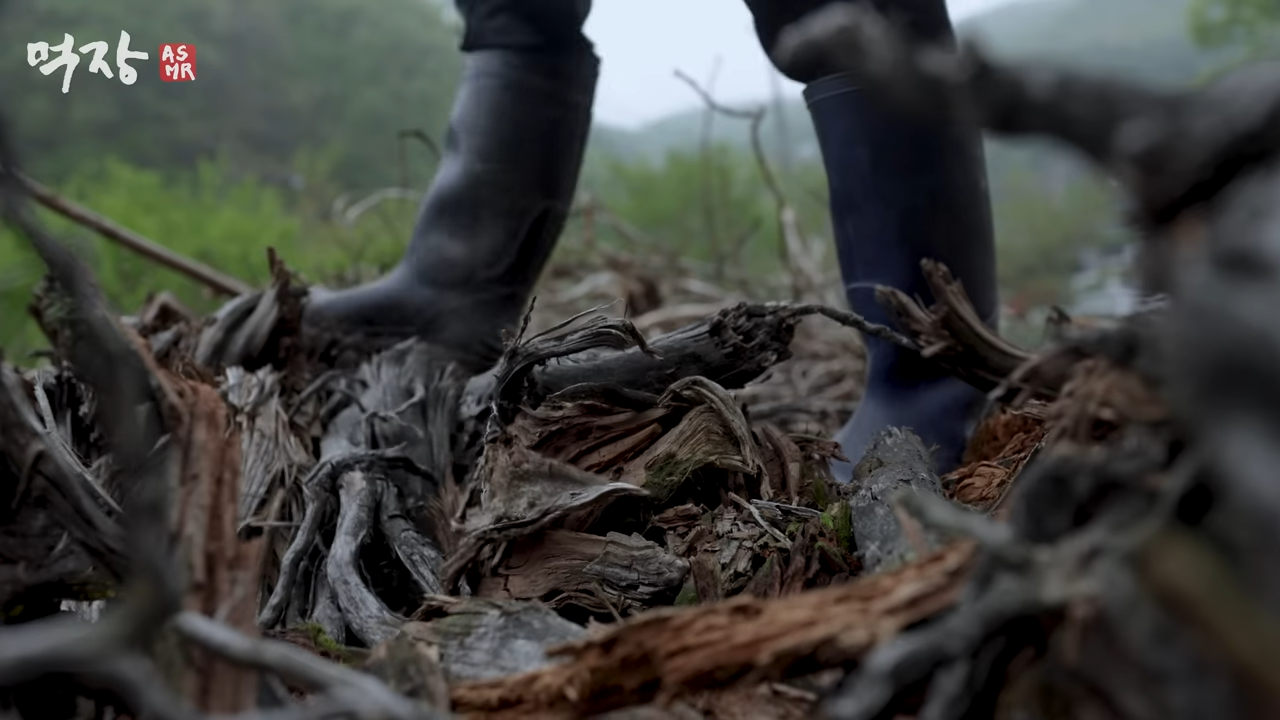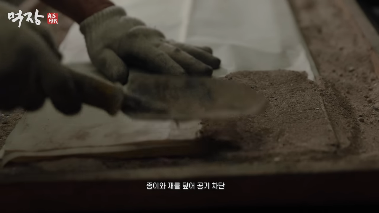 나무를 태우고 연막에 남은 그을음을 모음
