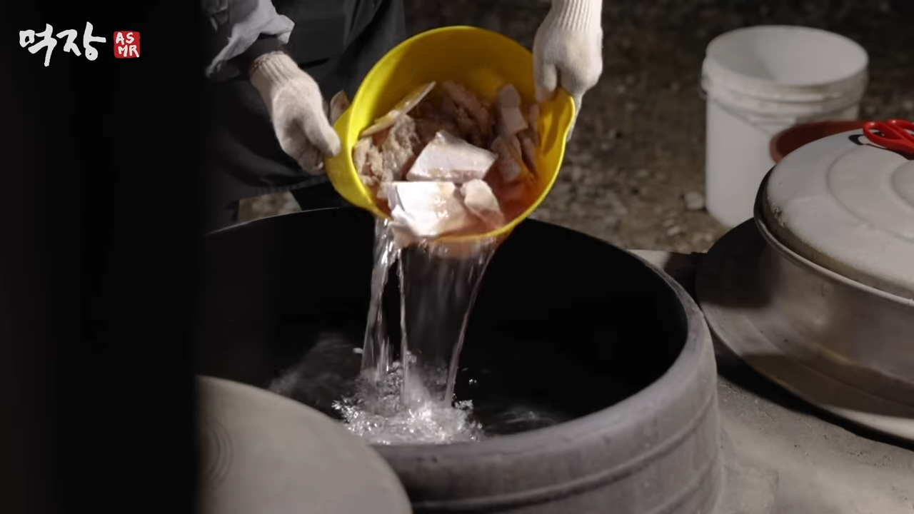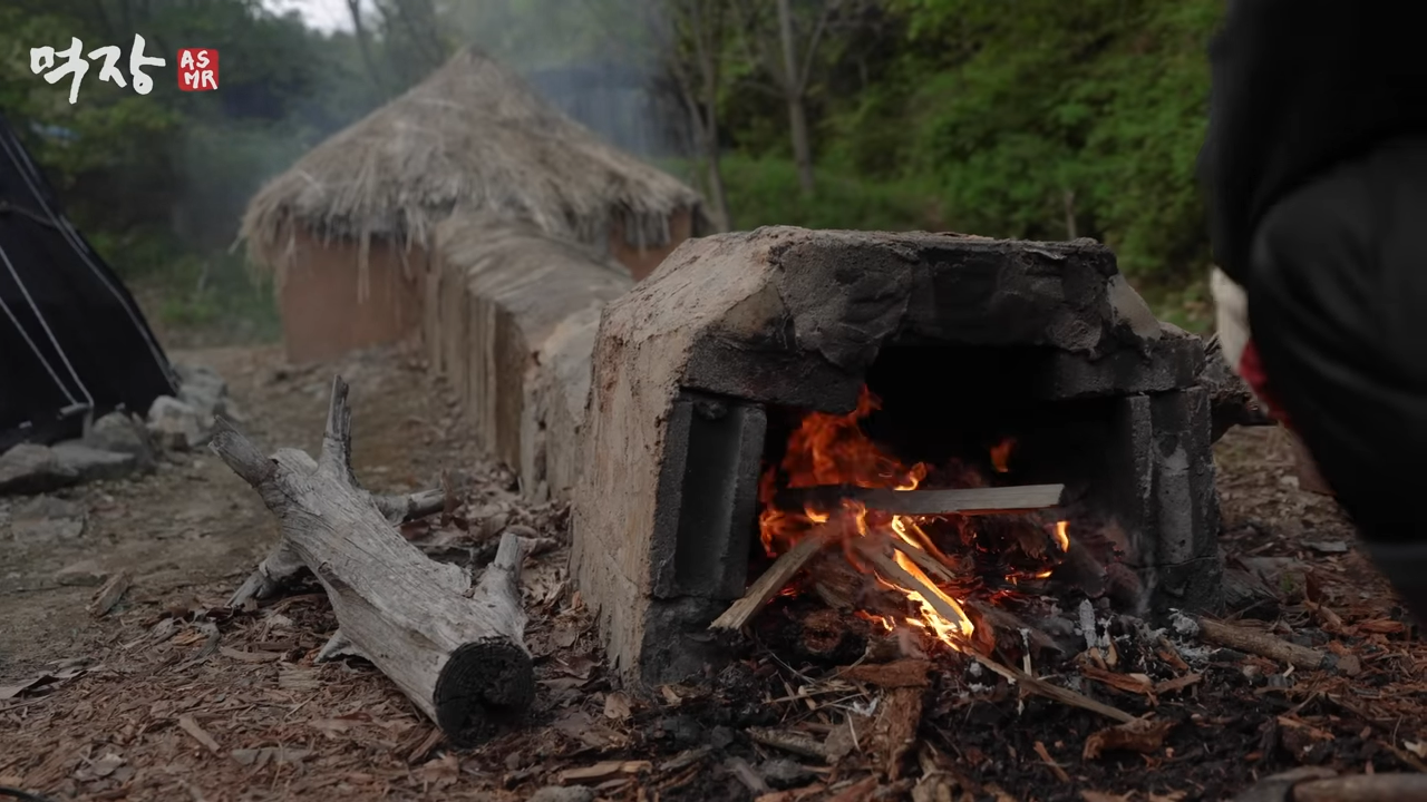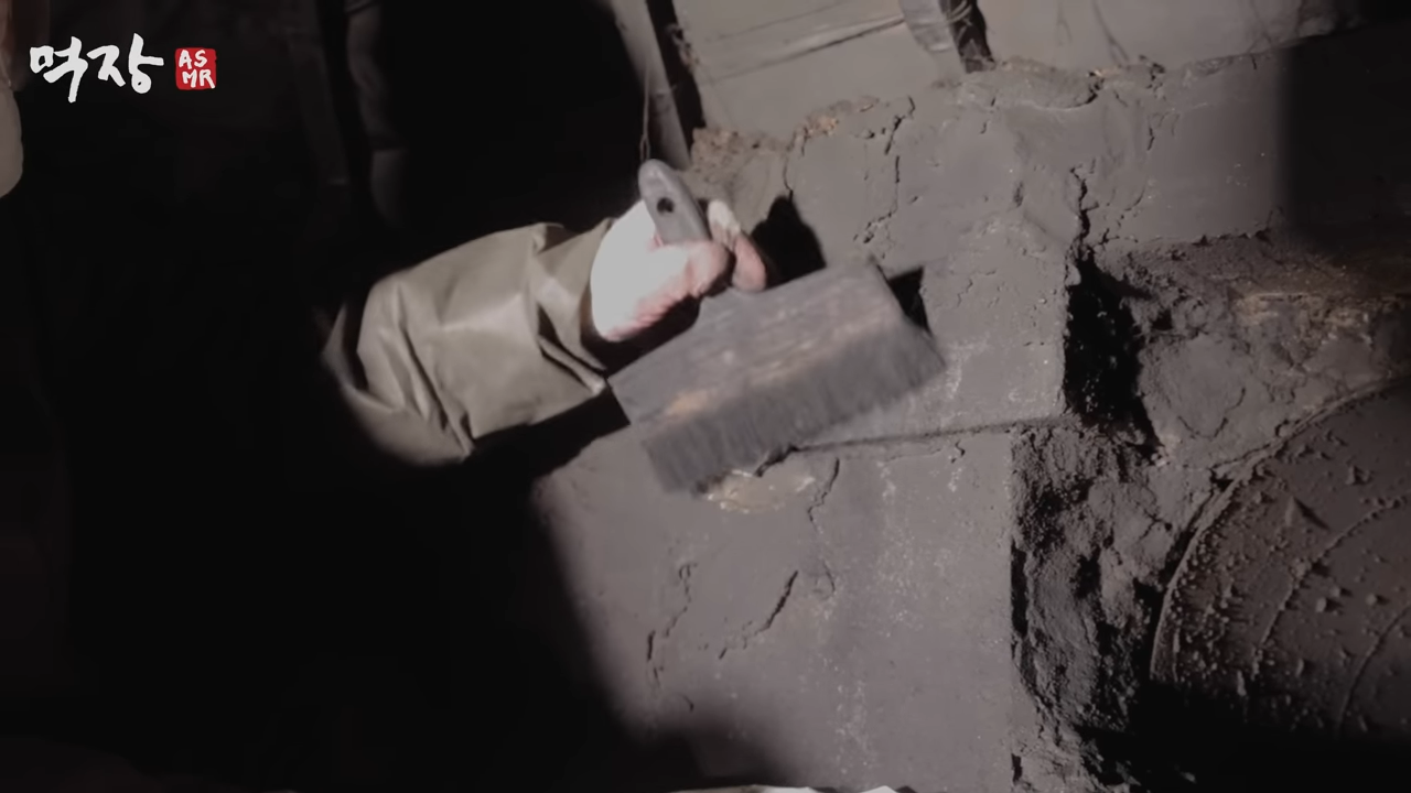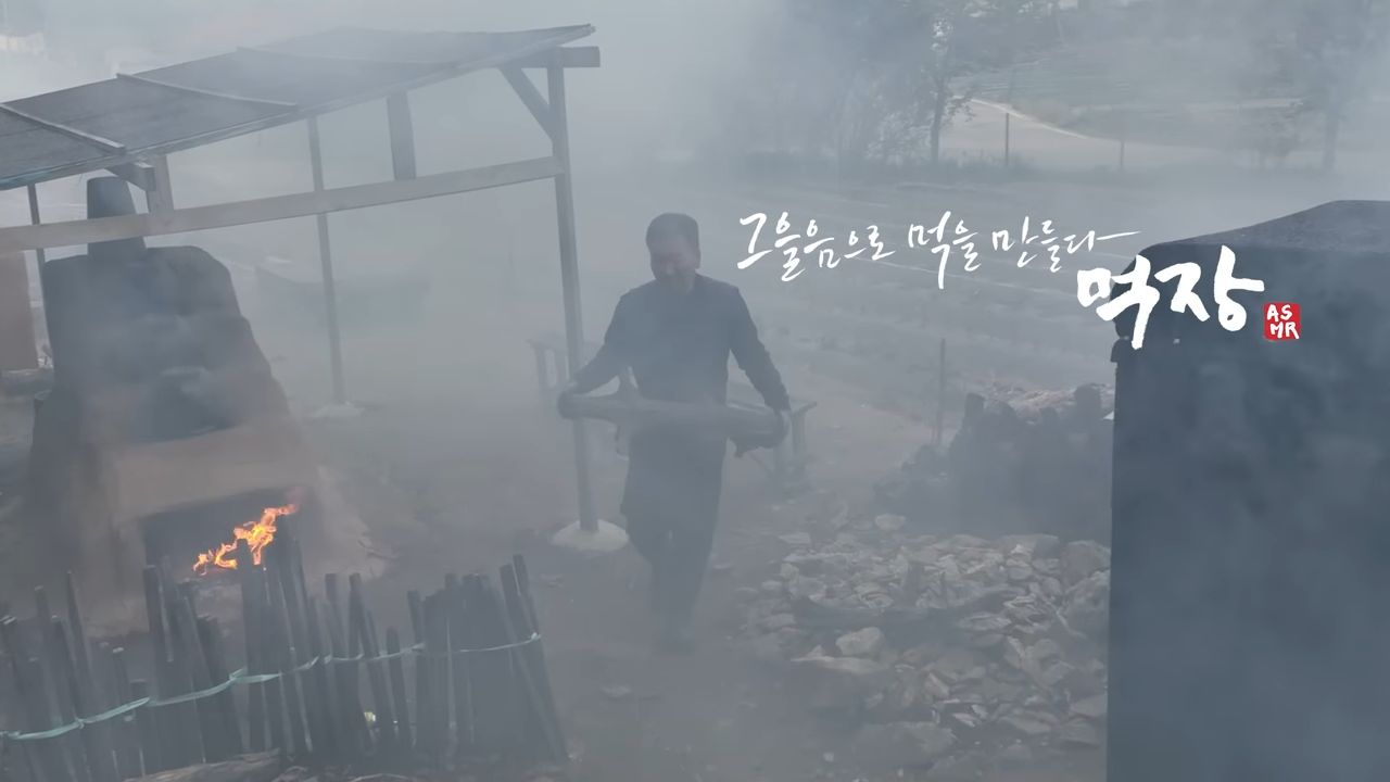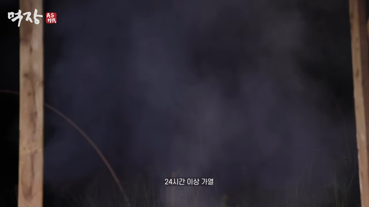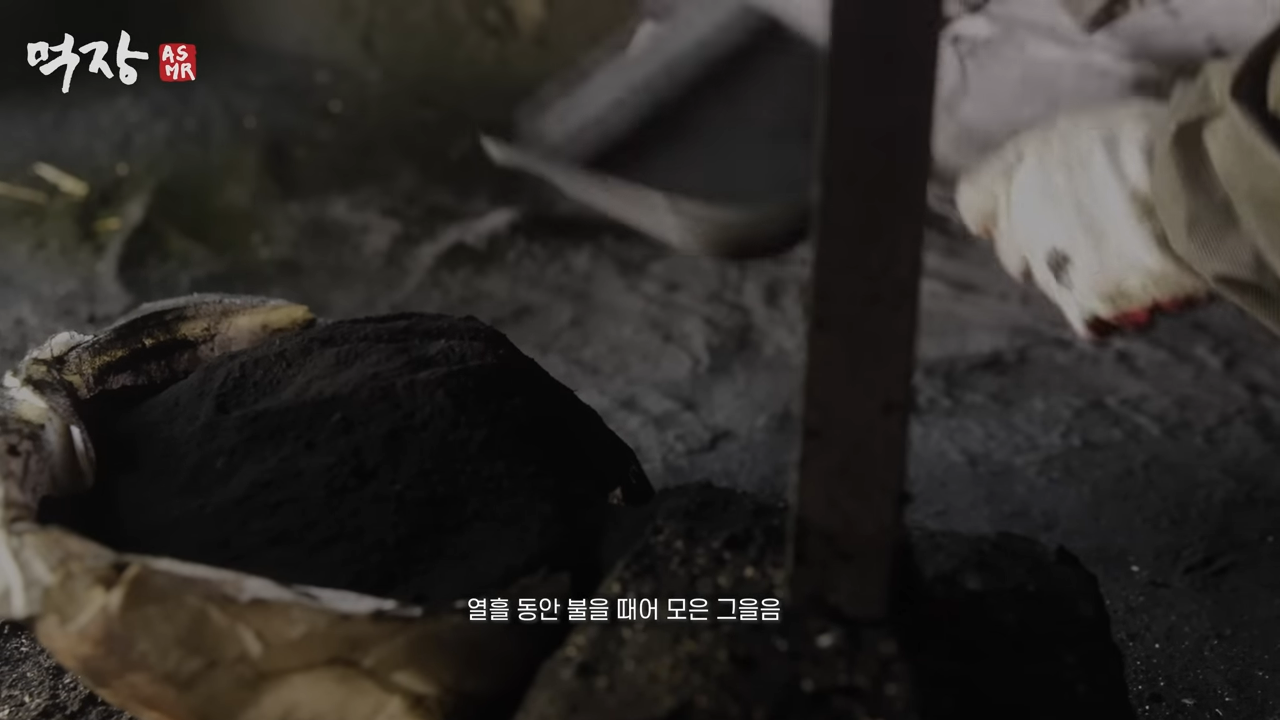 먹가마에 넣고 나무를 태움