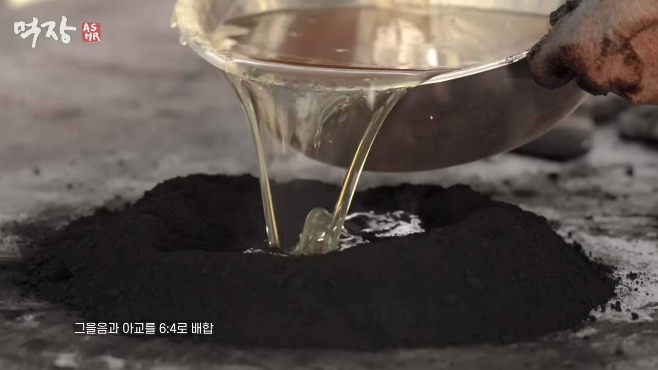 그을음과 아교를 섞어서