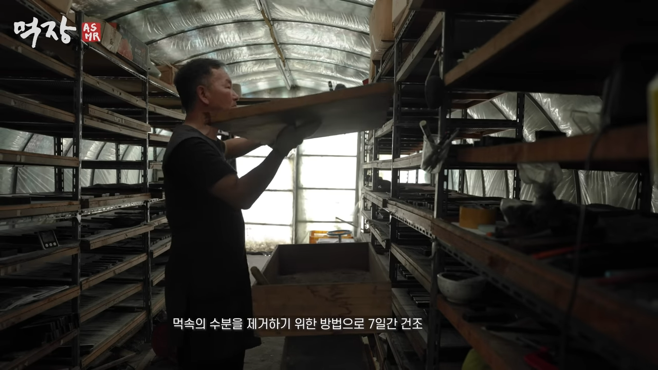 아직 말랑말랑한 먹을 7일간 건조시킴