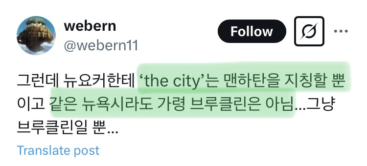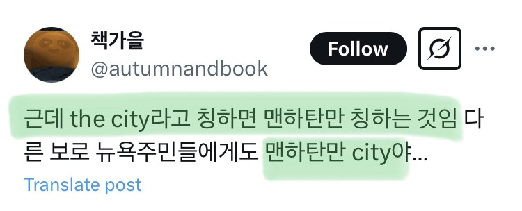 보통 멘하탄 달랑 하나임