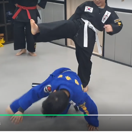 하얀띠 노란띠 친구들은 냅다 정권지르기 이런 거 밖에 안 가르치지만 대충 띠가 빨간띠 쯤 되면... 화려한 진기명기 기술들을 갈챠줌