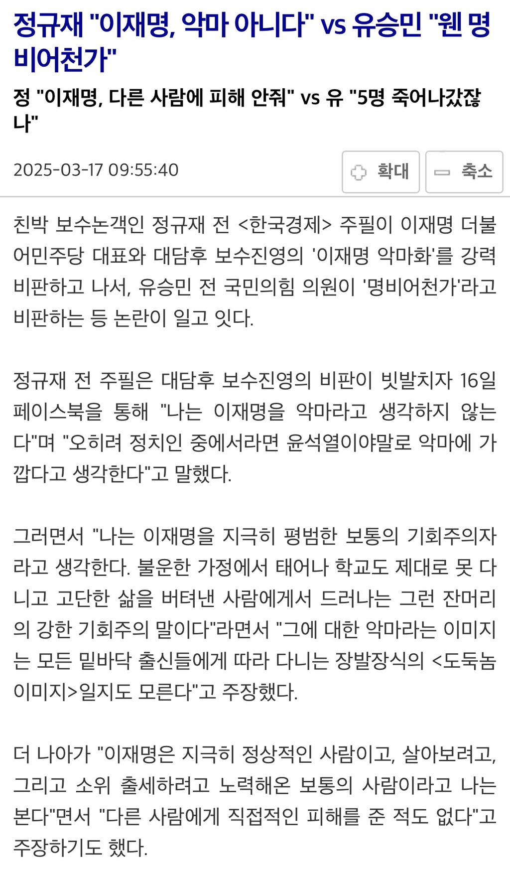 정규재가 페북에 올린 글인데 장문+살짝 불편한 부분이 좀 있긴해도 글을 잘 쓰긴 했더라고.. 맞는말만 가득한데 댓으로 극우들한테 ㅈㄴ 욕먹는중