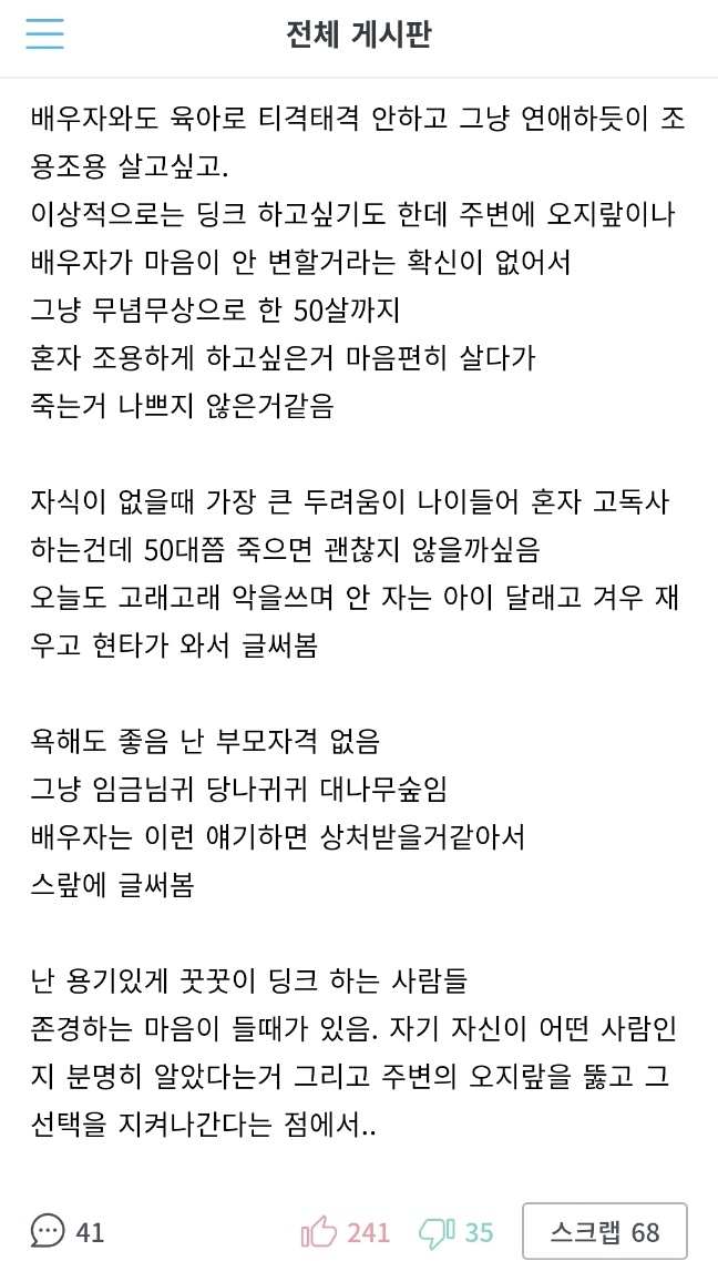 작성자응응웅 작성시간 25.03.18 저런 맘으로 책임감으로 키우는 부모들이 반은 될텐데 뭘 애가 불쌍해..