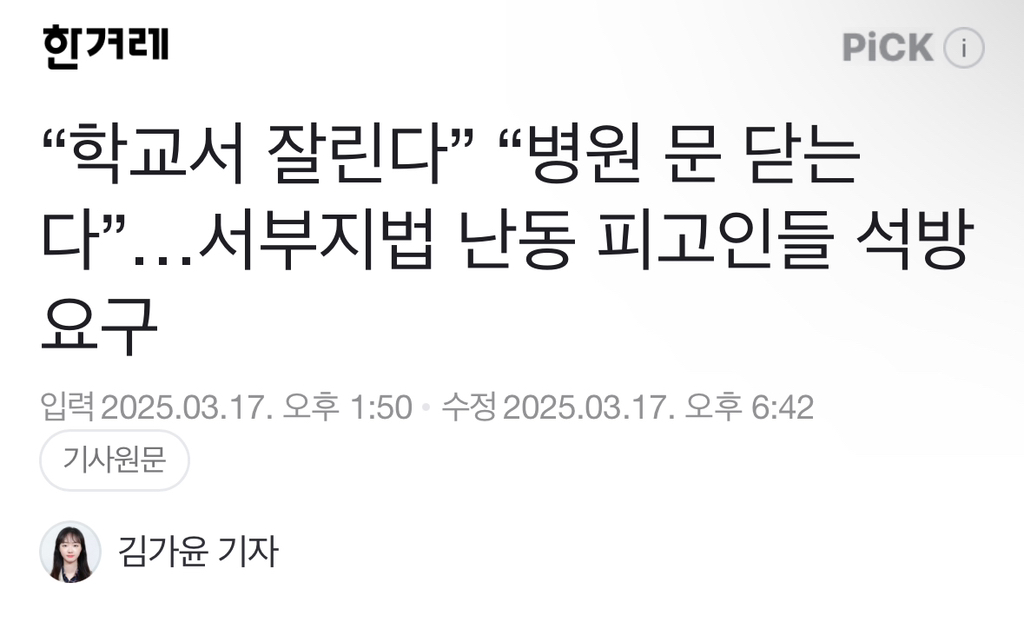 [여시뉴스데스크]“학교서 잘린다” “병원 문 닫는다”…서부지법 난동 피고인들 석방 요구 작성자소리앙|작성시간25.03.18|조회수1,924 목록 댓글 19 글자크기 작게가 글자크기 크게가 출처: https://naver.me/xQeMOmcX“학교서 잘린다” “병원 문 닫는다”…서부지법 난동 피고인들 석방 요구“사실 2월 말 졸업식이 있었습니다. 구속에서 풀려나면 직장을 계속 다닐 수 있는데….” 서울서부지법 형사합의11부(재판장 김우현) 심리로 17일 열린 서부지법 난동 재판의 피고인석에 ㄱ씨(32n.news.naver.com전문출처 다음검색 현재 게시글 추가 기능 열기 북마크 공유하기 신고 센터로 신고 댓글 댓글 19 댓글쓰기 답글쓰기 댓글 리스트 작성자꿈쟁이 | 작성시간 25.03.18 어쩌라고다… 작성자거지여시 | 작성시간 25.03.18 그럼 할거 다하고 짬나면 들어간다는거임?ㅋㅋㅋㅋㅋ 작성자주문하신 아이야 | 작성시간 25.03.18 수준이 딱 저만큼..... 전쟁나길 바란다는 남자들도 막상 전쟁나면 살려달라고 도망가기 바쁠듯..... 작성자아름드리 | 작성시간 25.03.18 징징이들 지네가 한 행동 책임도 못질거면서 작성자아니근데시바진짜 | 작성시간 25.03.18 ㅋ 댓글 전체보기