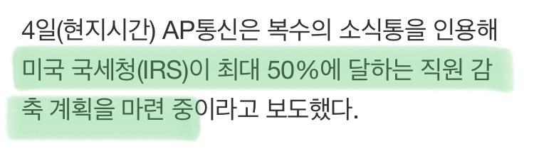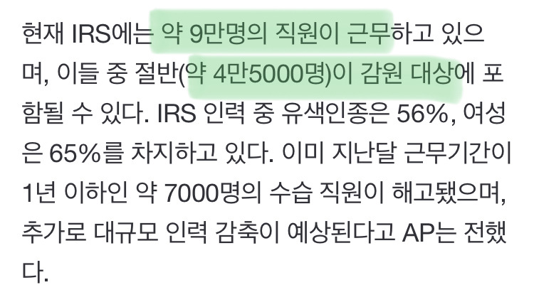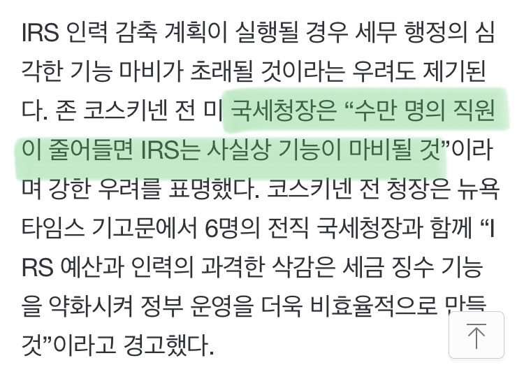 [기타]미국 공무원들 해고 칼바람, 다음은 국세청 작성자(본인닉네임).|작성시간25.03.18|조회수2,309 목록 댓글 5 글자크기 작게가 글자크기 크게가 출처: https://n.news.naver.com/article/018/0005955706?sid=104 다음검색 현재 게시글 추가 기능 열기 북마크 공유하기 신고 센터로 신고 댓글 댓글 5 댓글쓰기 답글쓰기 댓글 리스트 작성자호라이두 | 작성시간 25.03.18 ...? 작성자richrichplz | 작성시간 25.03.18 사람을 왜 짤러... 작성자내소원=친일파척결 | 작성시간 25.03.18 후진국 그자체 작성자숭구리당당해 | 작성시간 25.03.18 ㄷ ㄷ 미국 국세청 파워 진짜 막강한 곳 아니야? 진짜 여기나 저기나 에바적이다 ;; 작성자에헤헴 | 작성시간 25.03.18 아니 근데 공무원아님..? 댓글 전체보기