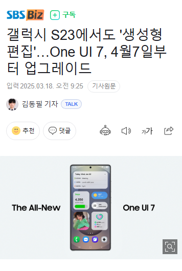 삼성전자가 갤럭시 S25 시리즈 이전에 출시한 주요 모델에도 'One UI 7' 업데이트를 오는 4월 7일부터 순차적으로 시작한다고 오늘(18일) 밝혔습니다.