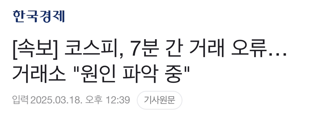 [여시뉴스데스크][속보] 코스피, 7분 간 거래 오류…거래소 "원인 파악 중" 작성자소리앙|작성시간25.03.18|조회수2,698 목록 댓글 19 글자크기 작게가 글자크기 크게가 출처: https://naver.me/5CWOLoB4[속보] 코스피, 7분 간 거래 오류…거래소 "원인 파악 중"코스피, 7분간 거래 오류…거래소 "원인 파악 중"n.news.naver.com전문출처 다음검색 현재 게시글 추가 기능 열기 북마크 공유하기 신고 센터로 신고 댓글 댓글 19 댓글쓰기 답글쓰기 댓글 리스트 작성자엔요(Enjoy Yogurt) | 작성시간 25.03.18 진짜 미쳤네 작성자shineonme | 작성시간 25.03.18 조작한거 아니냐~~~ 작성자미야자키따쟈하오 | 작성시간 25.03.18 또 누가 장난질 치나보네 작성자답답얌전 | 작성시간 25.03.18 도이치김명신 생각난다 작성자월사천만원번다 | 작성시간 25.03.18 대체거래소 때문이겠지 진짜존나개또라이새끼들한창 매매하고있는데 지랄염병이고동양철관 내꺼 어쩔거냐 아오 댓글 전체보기