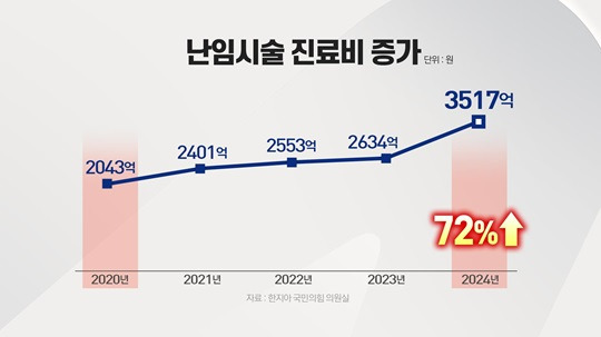 난임 시술을 받으려는 사람들이 늘면서 진료비는 한해 3500억원 수준으로 5년 만에 72% 증가했지만 난임시술 의료기관은 오히려 줄어들고 있는 것으로 확인됐습니다.