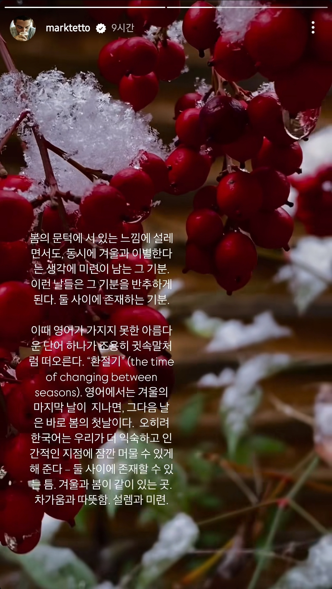 [흥미돋]마크테토 인스타 스토리 작성자초장없는 브로콜리|작성시간25.03.18|조회수98,110 목록 댓글 235 글자크기 작게가 글자크기 크게가 출처: https://www.instagram.com/marktetto 다음검색 현재 게시글 추가 기능 열기 북마크 공유하기 신고 센터로 신고 댓글 댓글 235 댓글쓰기 답글쓰기 댓글 리스트 작성자나는 빵순이 | 작성시간 25.03.20 …와우.. 작성자tomsdiner | 작성시간 25.03.25 와 작성자달리기등산 | 작성시간 25.03.25 글 잘쓴다. ㅎㅎㅎㅎㅎ 작성자모수부호 | 작성시간 25.03.27 와…..환절기 걍 나한텐 비염인데 작성자쿵땨리사바하 | 작성시간 25.03.27 im colean:) 댓글 전체보기