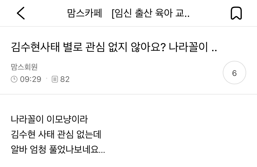 [스크랩] [기타]맘카페 김수현 최근 반응 작성자김기수리|작성시간25.03.18|조회수36,408 목록 댓글 37 글자크기 작게가 글자크기 크게가 다음검색 스크랩 원문 : *여성시대* 차분한 20대들의 알흠다운 공간 현재 게시글 추가 기능 열기 북마크 공유하기 신고 센터로 신고 댓글 댓글 37 댓글쓰기 답글쓰기 댓글 리스트 작성자왕왕왕왕왕왕왕월 | 작성시간 25.03.19 관심없다 거짓말 시간 남아돌아서 젤 잘알아 작성자악악악악크크 | 작성시간 25.03.19 알바망상ㄴ 이래 아 도랏나 작성자퍼스트펭귄임 | 작성시간 25.03.19 ㅜㅜㅋㅋㅋㅋㅋ아니 단어조합이 작성자당돌한너구리 | 작성시간 25.03.19 알바망상년ㅋㅋㅋㅋㅋㅋㅋㅋㅋㅋ 작성자그거먼대 | 작성시간 25.03.19 뇬년난리났다 댓글 전체보기