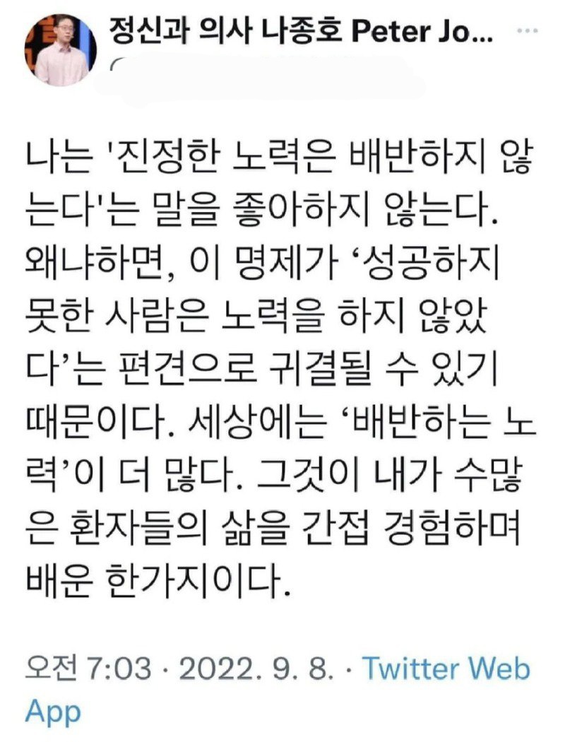 작성자식빵새우계란전분 작성시간 25.03.19 패배주의가 아니라 현실주의인듯 간절한 만큼 잘 안됐을때 부작용도 크고 노력 만능 주의가 아이러니하게도 노력을 부정하게 되는 말 같음