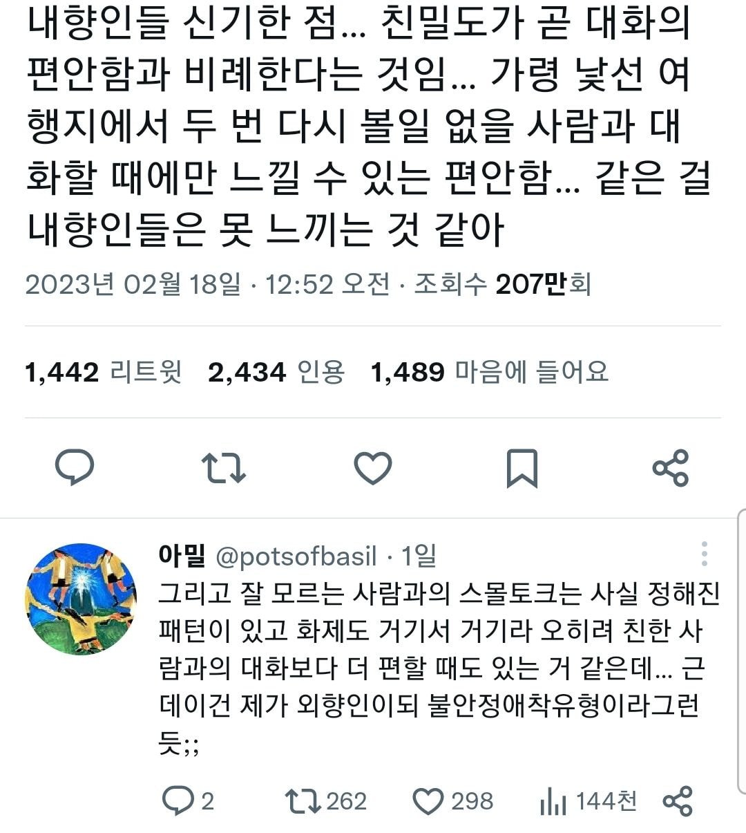 작성자당신의샛별 작성시간 25.03.19 일회성이면 오히려 찐친한테도 못하는이야기도 나올때도있고그래
