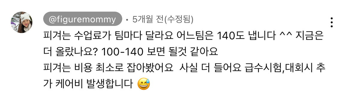 국대급 선수면 안무도 해외에서 받고, 전지훈련도 가기도 하고 해서 더 높을 것으로 추정.
