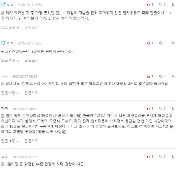 작성자코코넛회 작성시간 25.03.19 미역국 자주 먹어봐! 진짜 쾌변함