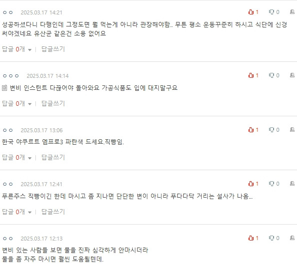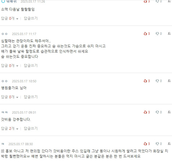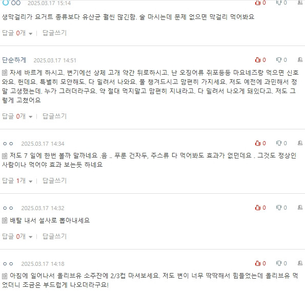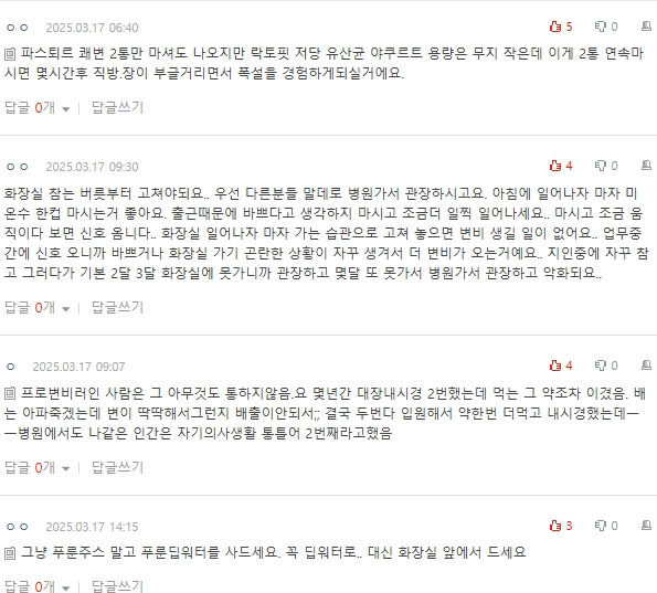 작성자shineonme 작성시간 25.03.19 쾌변음료 마시고 물 두컵에 윗몸일으키기 좀 하면 바로 신호 오던데