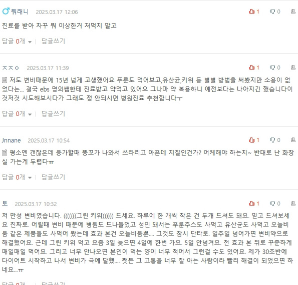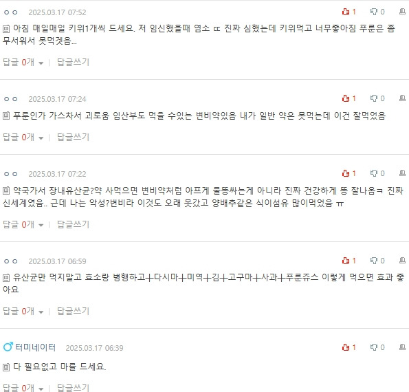 푸룬 이런거는 배아프고 키위는 부작용도 거의없음 -
