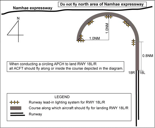 남해고속도로를 넘어가지 않도록 주의해서 선회해서 착륙하는게 바로 그 공식임