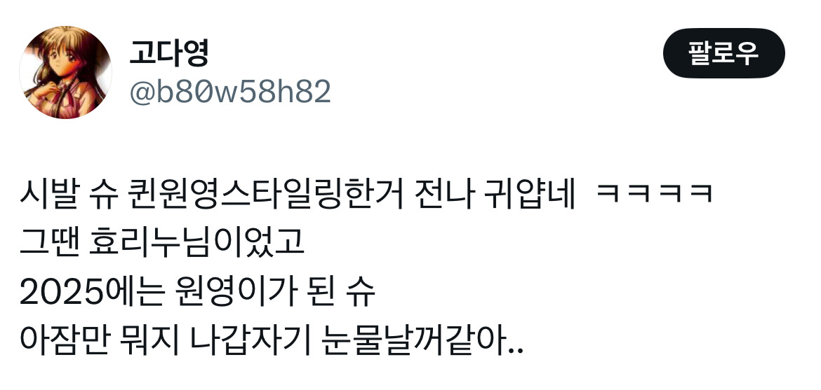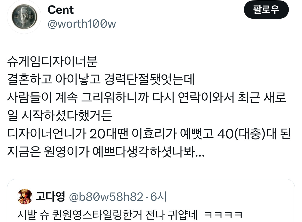 [흥미돋]아바타스타 슈 디자이너가 20대 땐 이효리가 예뻤고 40대인 지금은 원영이가 예쁘다 생각하셨나봐.twt